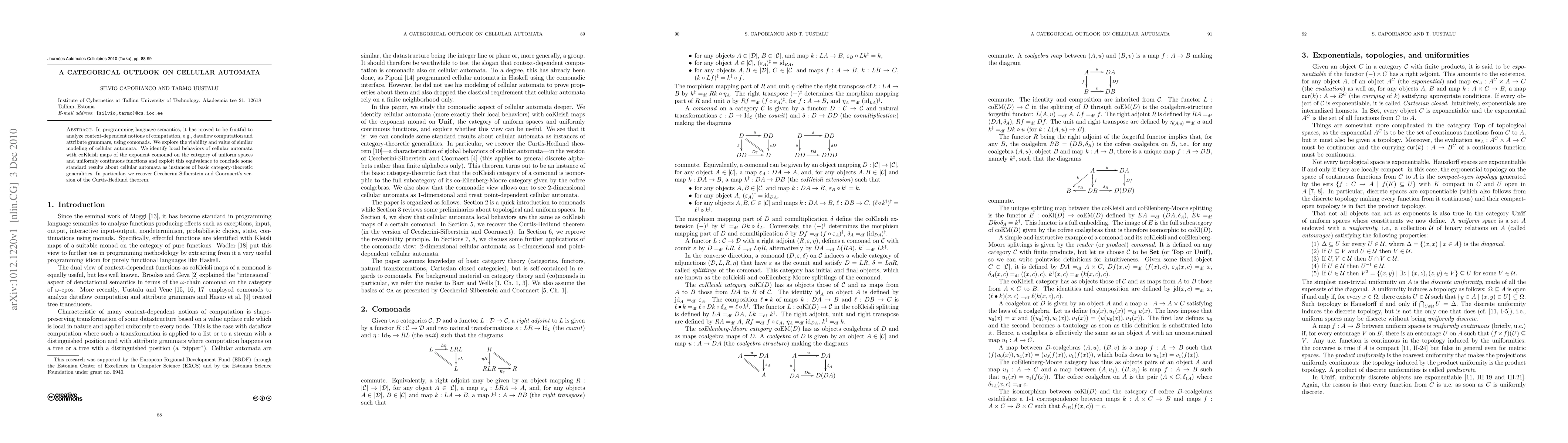 This paper investigates the application of comonads in category theory to model cellular automata, identifying their local behaviors through coKleisli maps, and demonstrates the theorem of Ceccherini-Silberstein and Coornaert as a result of these categorical insights.