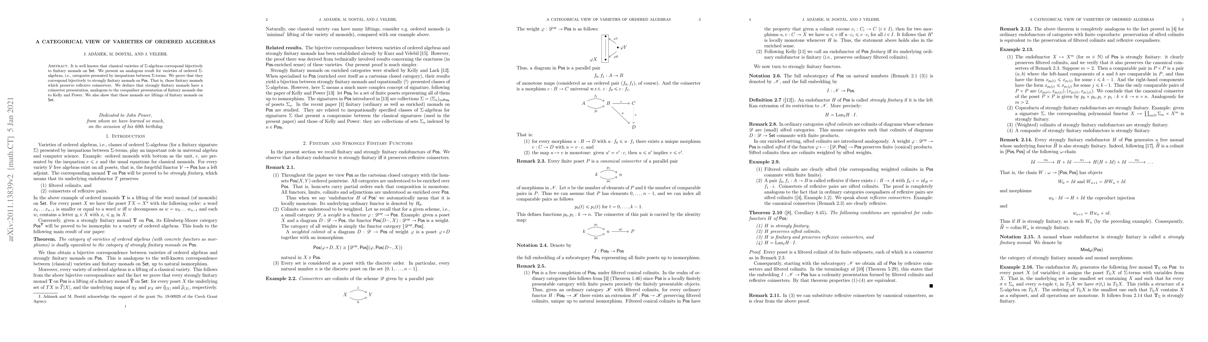 This paper establishes a categorical equivalence between varieties of ordered $\Sigma$-algebras and strongly finitary monads on $\mathsf{Pos}$, analogous to the classical correspondence between $\Sigma$-algebras and finitary monads on $\mathsf{Set}$. It also demonstrates that these monads have a coinserter presentation and are liftings of finitary monads on $\mathsf{Set}$.