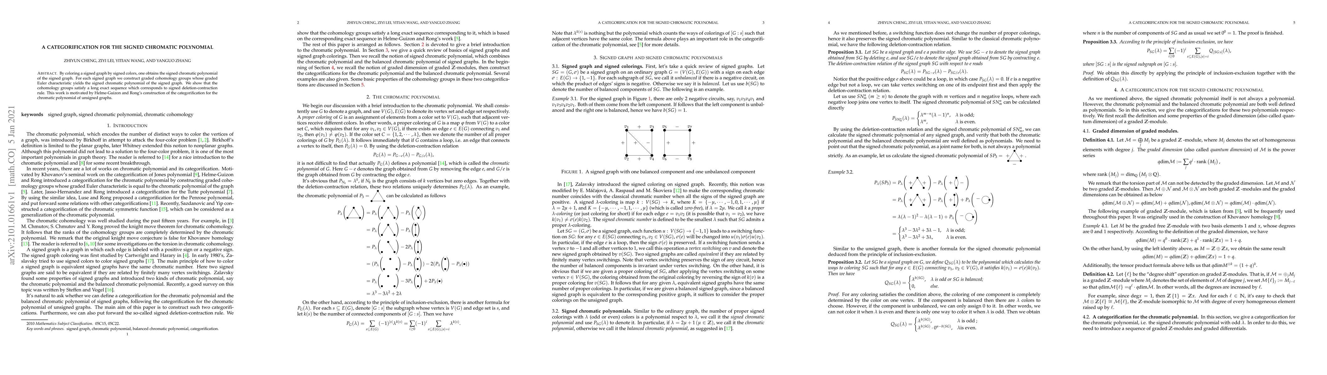 This paper constructs graded cohomology groups for signed graphs whose Euler characteristic gives the signed chromatic polynomial, establishing a long exact sequence aligning with the signed deletion-contraction rule, inspired by the categorification of the chromatic polynomial for unsigned graphs.