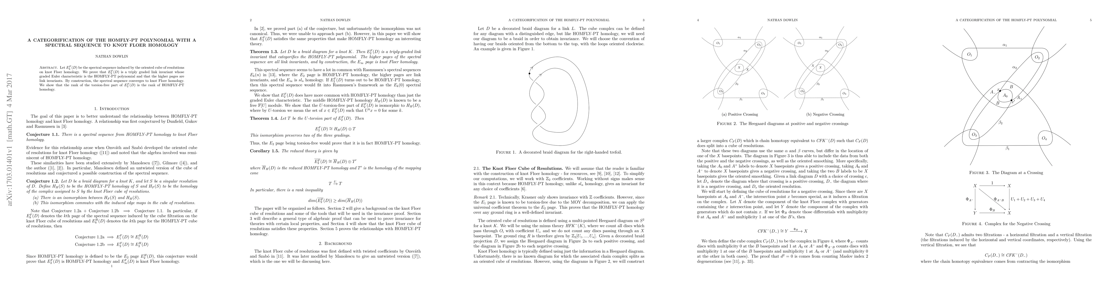 Let $E_{k}^{F}(D)$ be the spectral sequence induced by the oriented cube of resolutions on knot Floer homology. We prove that $E_{2}^{F}(D)$ is a triply graded link invariant whose graded Euler characteristic is the HOMFLY-PT polynomial and that the higher pages are link invariants. By construction, the spectral sequence converges to knot Floer homology. We show that the rank of the torsion-free part of $E_{2}^{F}(D)$ is the rank of HOMFLY-PT homology.