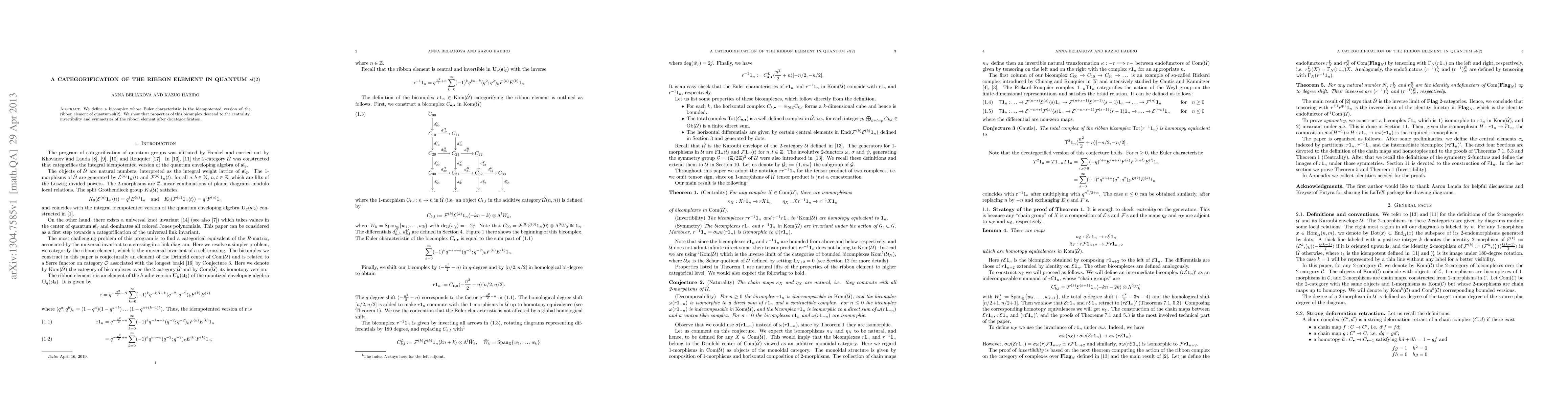 We define a bicomplex whose Euler characteristic is the idempotented version of the ribbon element of quantum sl(2). We show that properties of this bicomplex descend to the centrality, invertibility and symmetries of the ribbon element after decategorification.