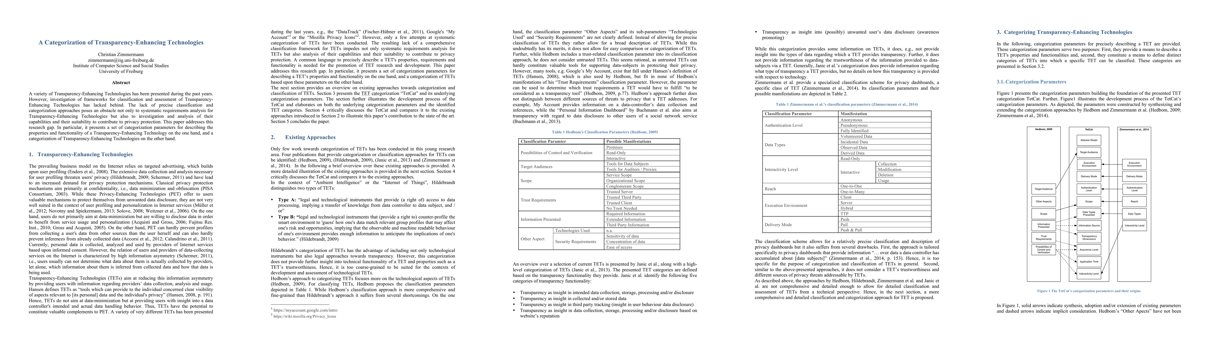This paper proposes a framework for categorizing Transparency-Enhancing Technologies to improve understanding of their properties and capabilities. It addresses the lack of classification approaches in the field, providing a set of parameters for describing these technologies.