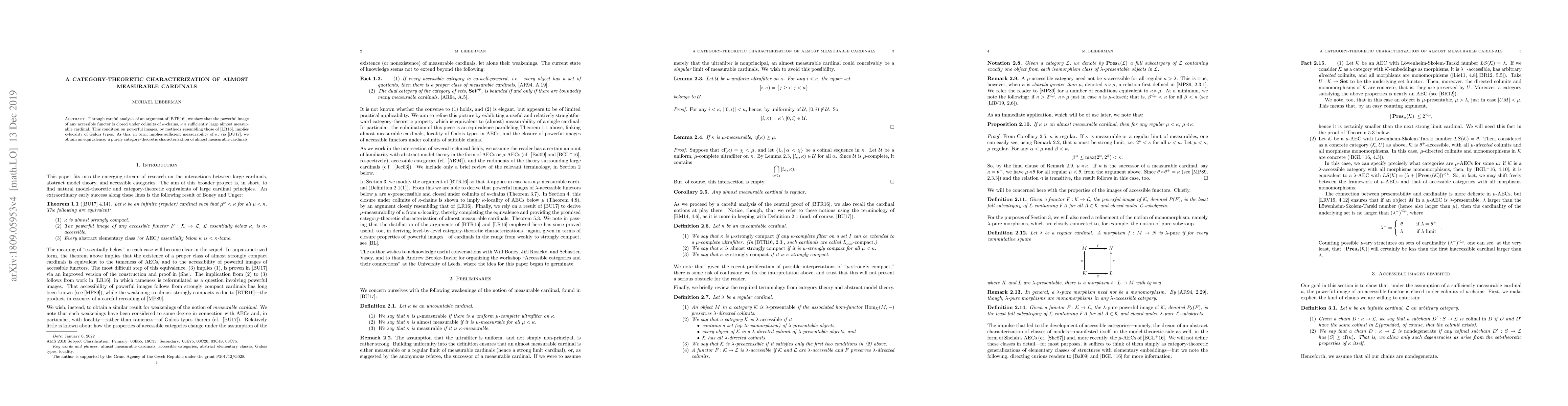 Through careful analysis of an argument of Brooke-Taylor and Rosicky, we show that the powerful image of any accessible functor is closed under colimits of $\kappa$-chains, $\kappa$ a sufficiently large almost measurable cardinal. This condition on powerful images, by methods resembling those of Lieberman and Rosicky, implies $\kappa$-locality of Galois types. As this, in turn, implies sufficient measurability of $\kappa$, via a paper of Boney and Unger, we obtain an equivalence: a purely category-theoretic characterization of almost measurable cardinals.