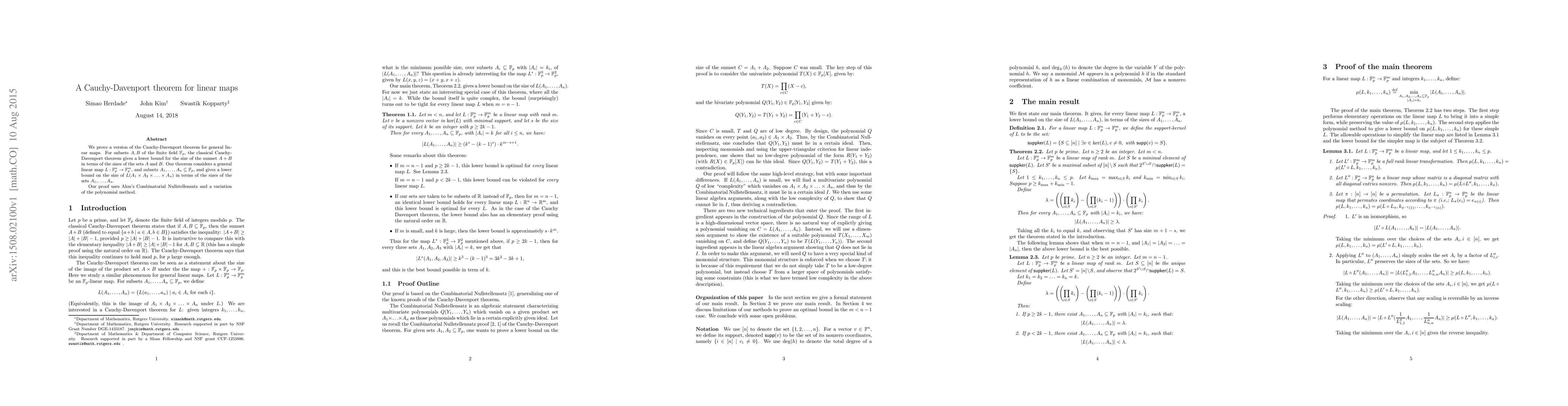 The paper proves a version of the Cauchy-Davenport theorem for general linear maps using Alon's Combinatorial Nullstellensatz and a variation of the polynomial method.