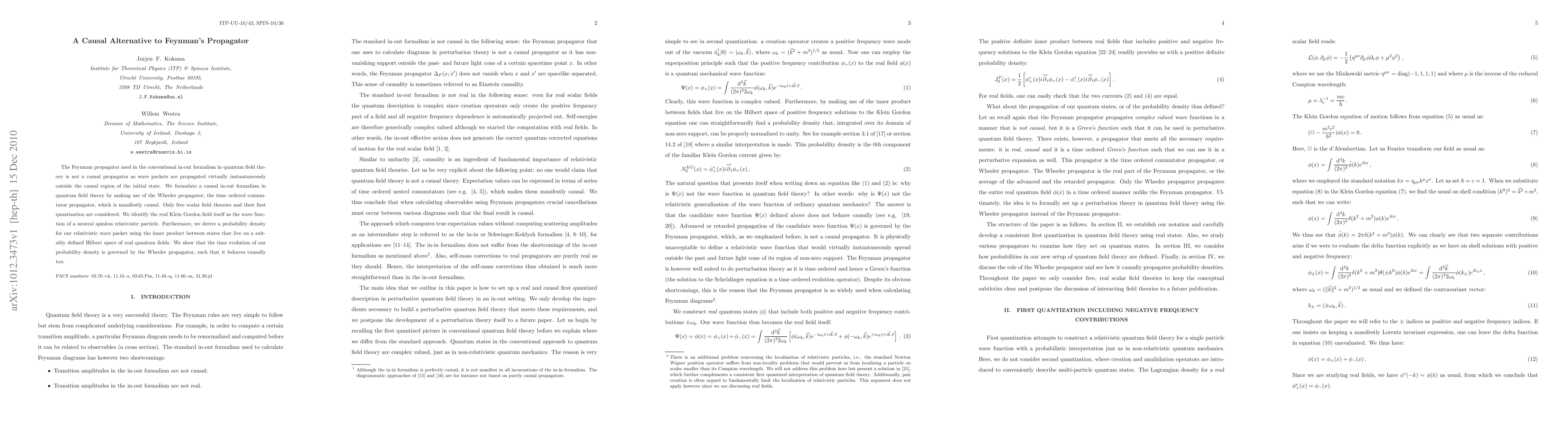 This paper proposes a causal alternative to Feynman's propagator by utilizing the Wheeler propagator, ensuring that wave packets propagate only within the causal region. It derives a probability density for relativistic wave packets and shows that their time evolution adheres to causal principles.
