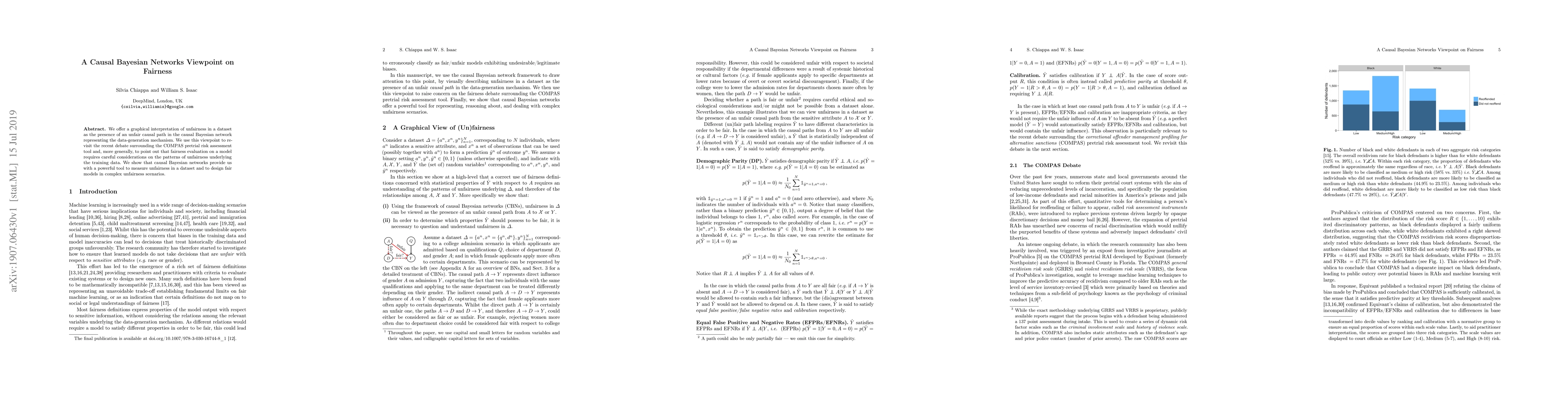 This paper presents a causal Bayesian networks framework to interpret unfairness in datasets as unfair causal paths in the underlying data-generation mechanism. It applies this approach to critique the COMPAS tool and emphasizes the importance of understanding training data patterns for fair model evaluation.