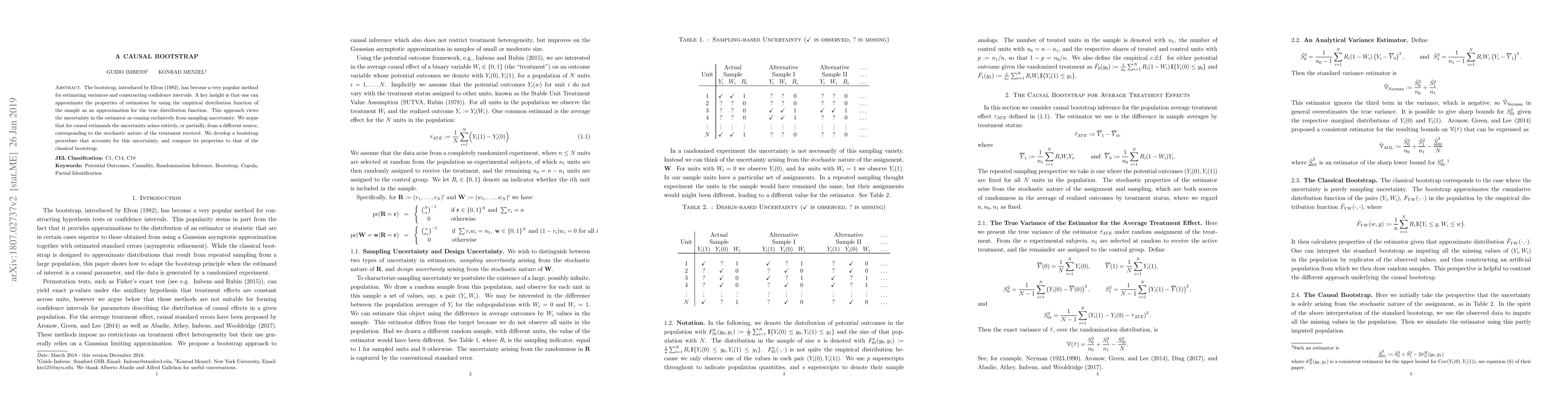 The bootstrap, introduced by Efron (1982), has become a very popular method for estimating variances and constructing confidence intervals. A key insight is that one can approximate the properties of estimators by using the empirical distribution function of the sample as an approximation for the true distribution function. This approach views the uncertainty in the estimator as coming exclusively from sampling uncertainty. We argue that for causal estimands the uncertainty arises entirely, or partially, from a different source, corresponding to the stochastic nature of the treatment received. We develop a bootstrap procedure that accounts for this uncertainty, and compare its properties to that of the classical bootstrap.