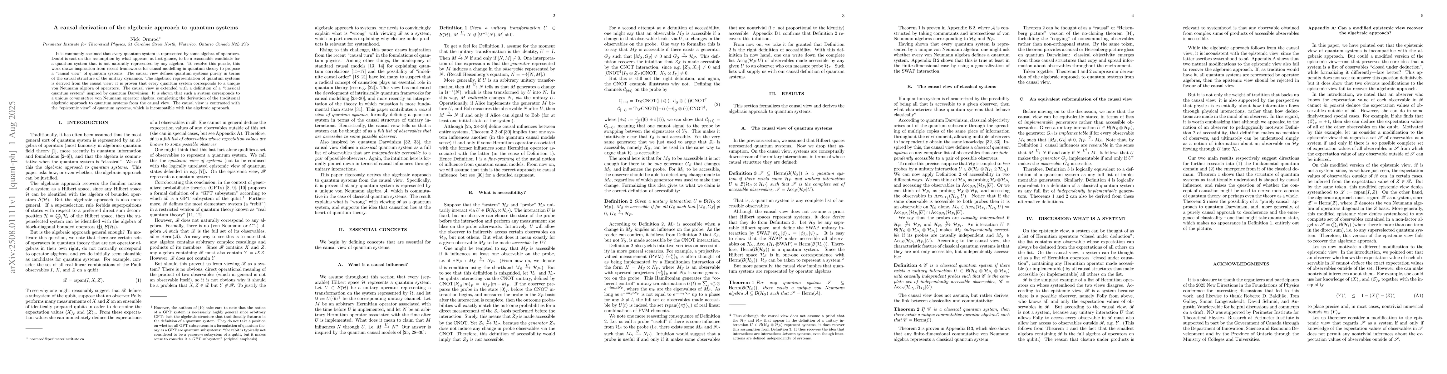 It is commonly assumed that every quantum system is represented by some algebra of operators. Doubt is cast on this assumption by what appears, at first glance, to be a reasonable candidate for a quantum system that is not naturally represented by any algebra. To resolve this puzzle, this work draws inspiration from recent frameworks for causal modelling in quantum theory to propose a "causal view" of quantum systems. The causal view defines quantum systems purely in terms of the causal structure of the unitary dynamics. The algebraic representation of quantum systems is derived from the causal view: it is proven that every quantum system corresponds to a unique von Neumann algebra of operators. The causal view is extended with a definition of a "classical quantum system" inspired by quantum Darwinism. It is shown that such a system corresponds to a unique commutative von Neumann operator algebra, completing the derivation of the traditional algebraic approach to quantum systems from the causal view. The causal view is contrasted with the "epistemic view" of quantum systems, which is incompatible with the algebraic approach.