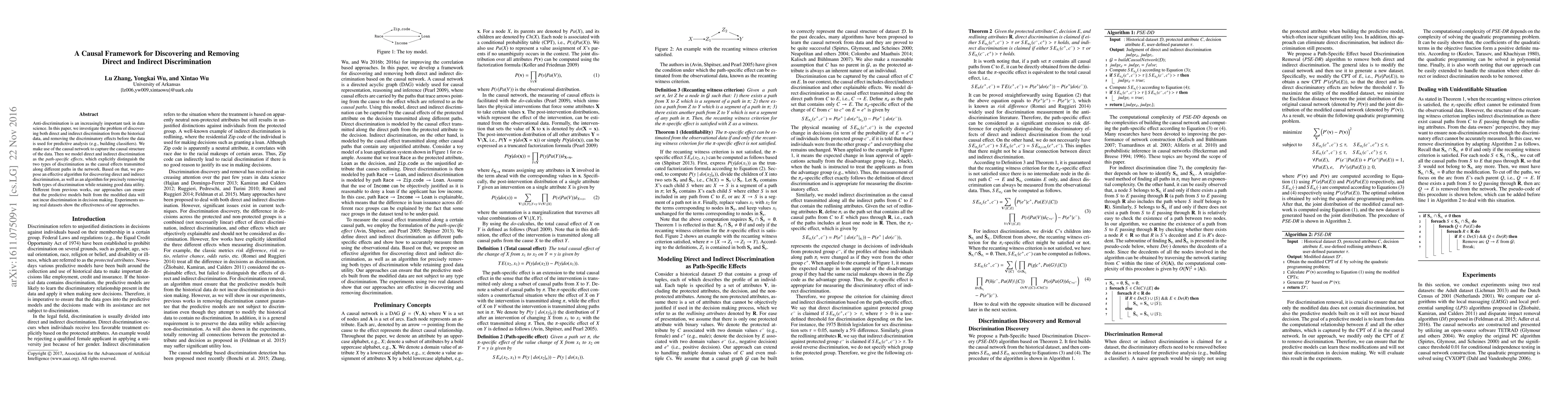 The research used causal networks to capture the causal structure of the data and proposed a discovery algorithm for both direct and indirect discrimination.