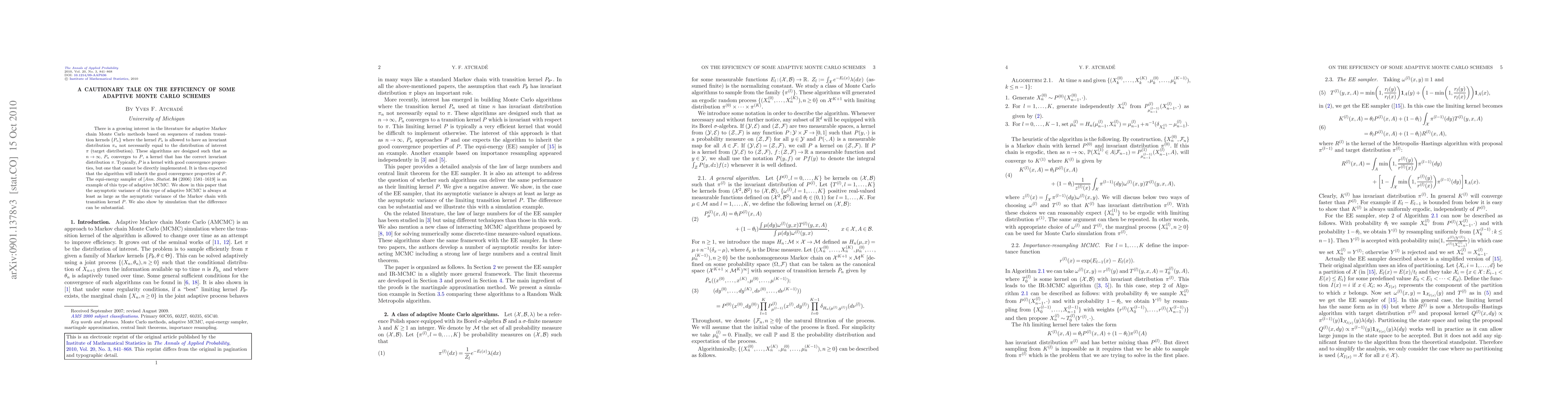 There is a growing interest in the literature for adaptive Markov chain Monte Carlo methods based on sequences of random transition kernels $\{P_n\}$ where the kernel $P_n$ is allowed to have an invariant distribution $\pi_n$ not necessarily equal to the distribution of interest $\pi$ (target distribution). These algorithms are designed such that as $n\to\infty$, $P_n$ converges to $P$, a kernel that has the correct invariant distribution $\pi$. Typically, $P$ is a kernel with good convergence properties, but one that cannot be directly implemented. It is then expected that the algorithm will inherit the good convergence properties of $P$. The equi-energy sampler of [Ann. Statist. 34 (2006) 1581--1619] is an example of this type of adaptive MCMC. We show in this paper that the asymptotic variance of this type of adaptive MCMC is always at least as large as the asymptotic variance of the Markov chain with transition kernel $P$. We also show by simulation that the difference can be substantial.