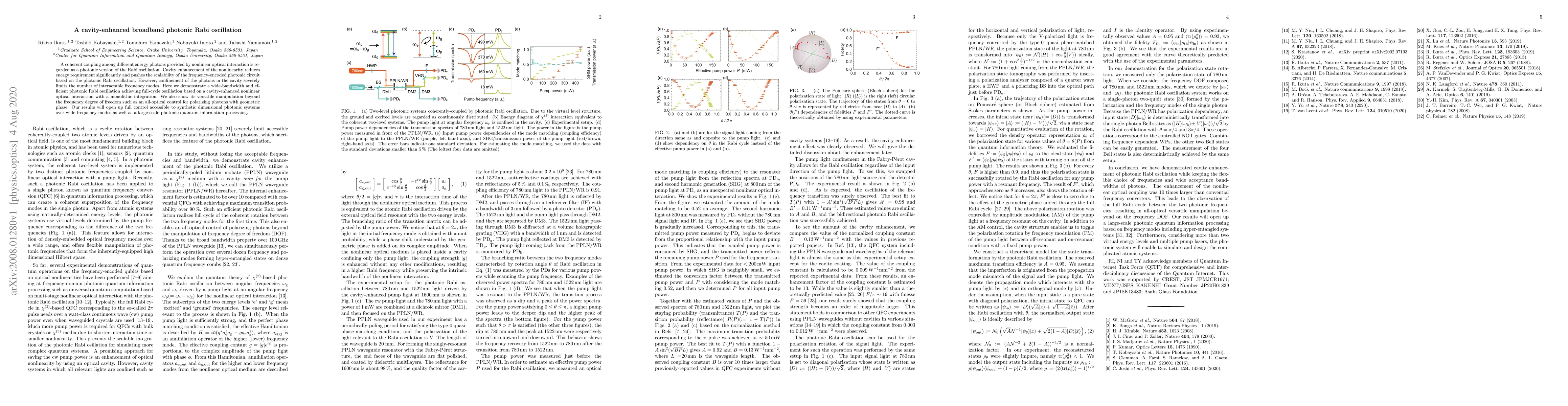 This paper demonstrates a cavity-enhanced broadband photonic Rabi oscillation, showing efficient coupling among different frequency photons via nonlinear optical interaction, and enabling versatile photonic manipulation including all-optical polarization control, which enhances scalability for large-scale photonic quantum information processing.