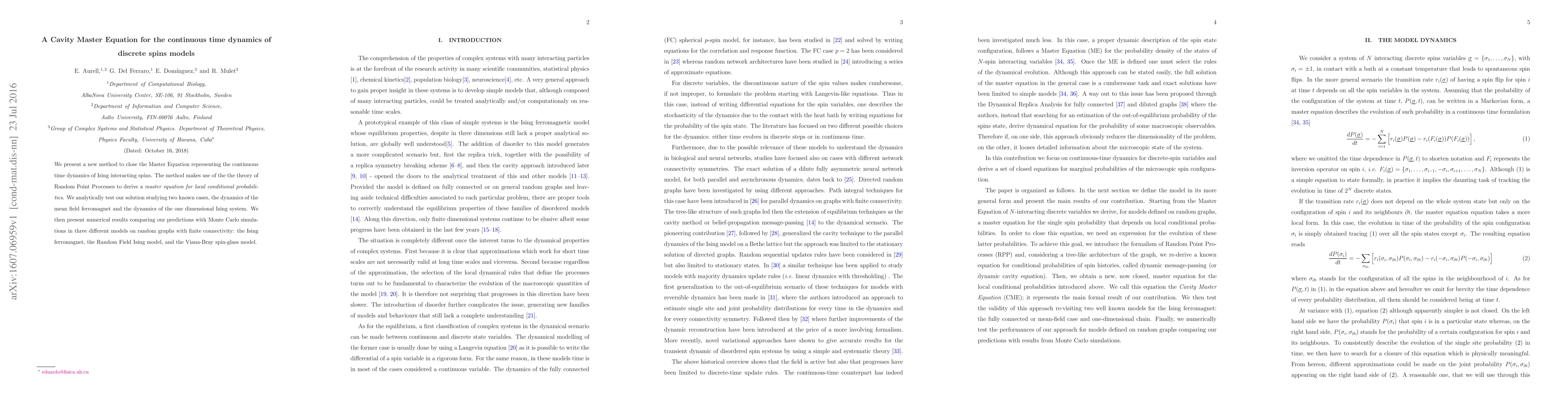 We present a new method to close the Master Equation representing the continuous time dynamics of Ising interacting spins. The method makes use of the the theory of Random Point Processes to derive a master equation for local conditional probabilities. We analytically test our solution studying two known cases, the dynamics of the mean field ferromagnet and the dynamics of the one dimensional Ising system. We then present numerical results comparing our predictions with Monte Carlo simulations in three different models on random graphs with finite connectivity: the Ising ferromagnet, the Random Field Ising model, and the Viana-Bray spin-glass model.