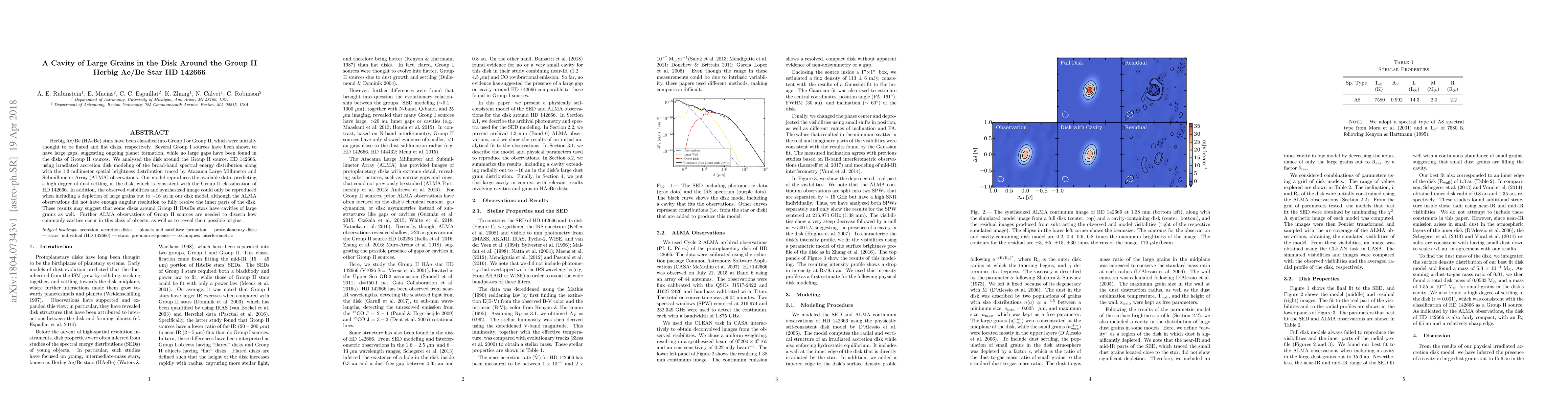 Herbig Ae/Be (HAeBe) stars have been classified into Group I or Group II, which were initially thought to be flared and flat disks, respectively. Several Group I sources have been shown to have large gaps, suggesting ongoing planet formation, while no large gaps have been found in the disks of Group II sources. We analyzed the disk around the Group II source, HD 142666, using irradiated accretion disk modeling of the broad-band spectral energy distribution along with the 1.3 millimeter spatial brightness distribution traced by Atacama Large Millimeter and Submillimeter Array (ALMA) observations. Our model reproduces the available data, predicting a high degree of dust settling in the disk, which is consistent with the Group II classification of HD 142666. In addition, the observed visibilities and synthesized image could only be reproduced when including a depletion of large grains out to ~16 au in our disk model, although the ALMA observations did not have enough angular resolution to fully resolve the inner parts of the disk. These results may suggest that some disks around Group II HAeBe stars have cavities of large grains as well. Further ALMA observations of Group II sources are needed to discern how commonly cavities occur in this class of objects, as well as to reveal their possible origins.