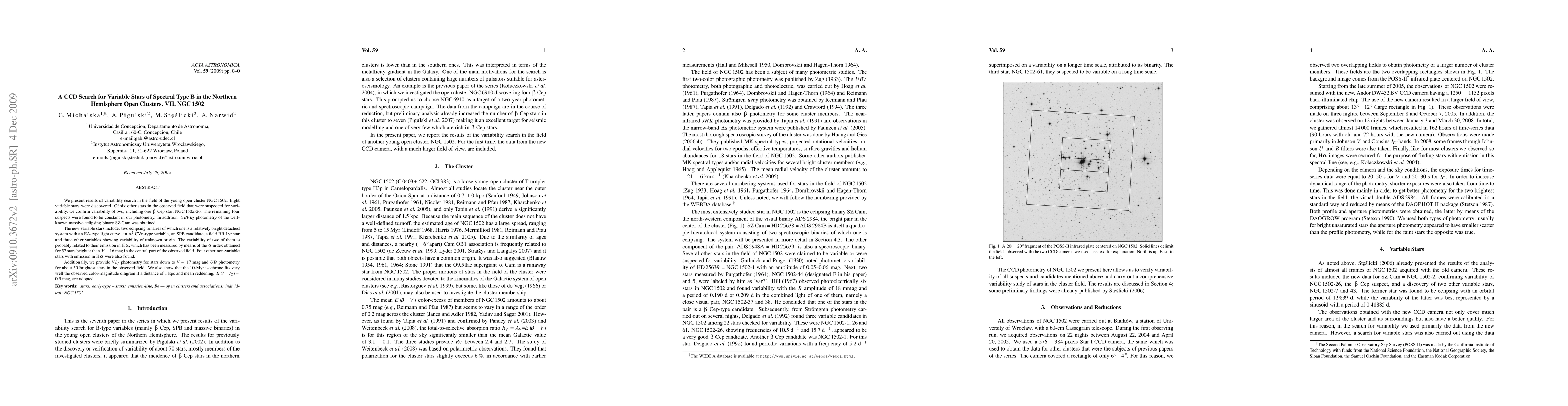 This paper reports the discovery of eight variable stars in the young open cluster NGC 1502, including two eclipsing binaries, an alpha2 CVn-type variable, and a field RR Lyrae star. The study also confirms the variability of two previously suspected stars, including a beta Cep star, and provides comprehensive UBVI photometry for the cluster.