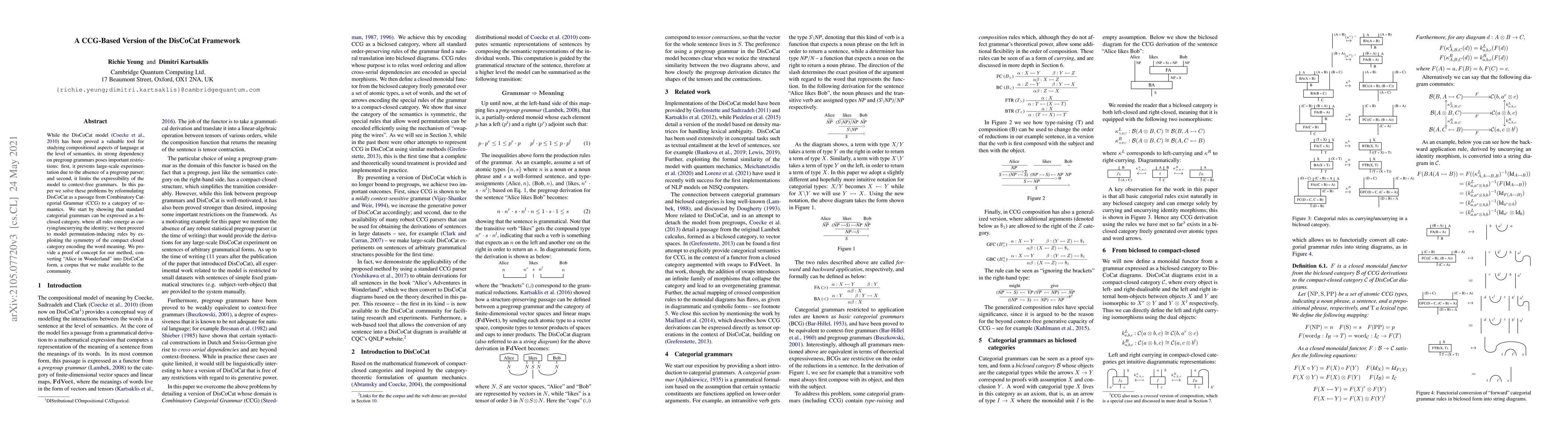 A new version of DisCoCat is proposed as a passage from Combinatory Categorial Grammar (CCG), addressing limitations such as no pregroup parser and limited expressibility to context-free grammars.