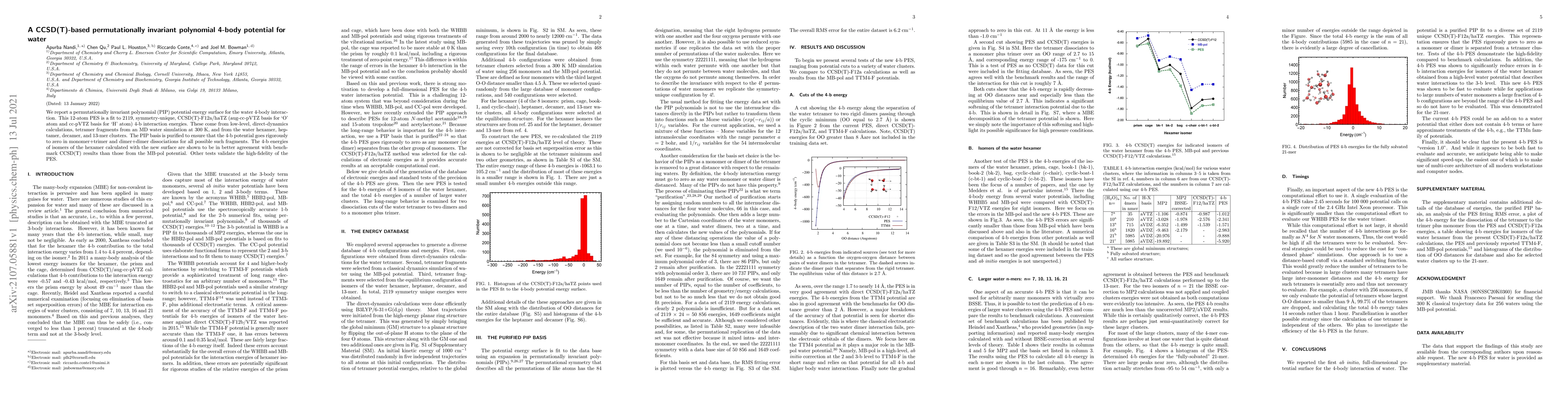 This paper presents a permutationally invariant polynomial potential energy surface for the water 4-body interaction, rigorously fitted to high-level CCSD(T)-F12a energies. The new potential shows improved accuracy in predicting hexamer isomer energies compared to existing methods, validating its high fidelity.