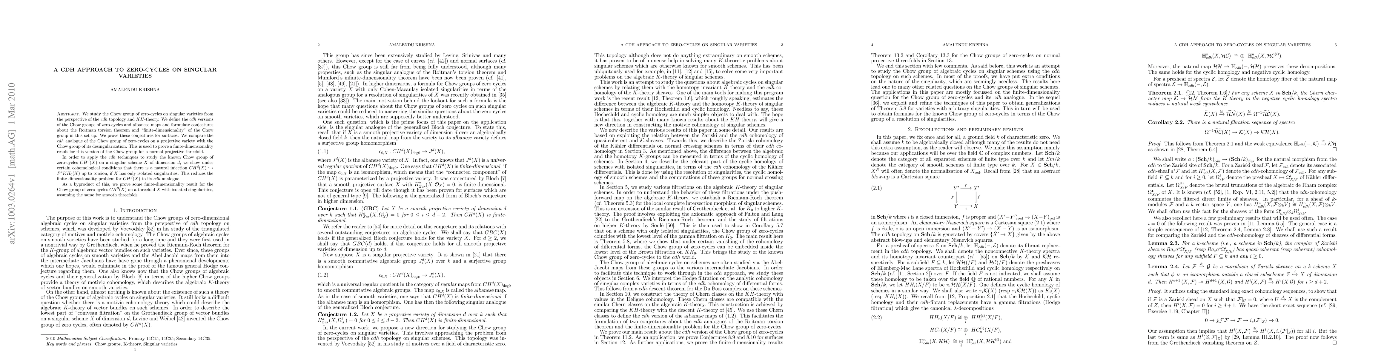 This paper investigates the Chow group of zero-cycles on singular varieties via the cdh topology, defining cdh versions of zero-cycles and albanese maps, and proving comparisons between these groups and those on the resolution of singularities. The results extend to known Chow groups of zero-cycles on surfaces, threefolds, and in some cases, arbitrary dimensions.