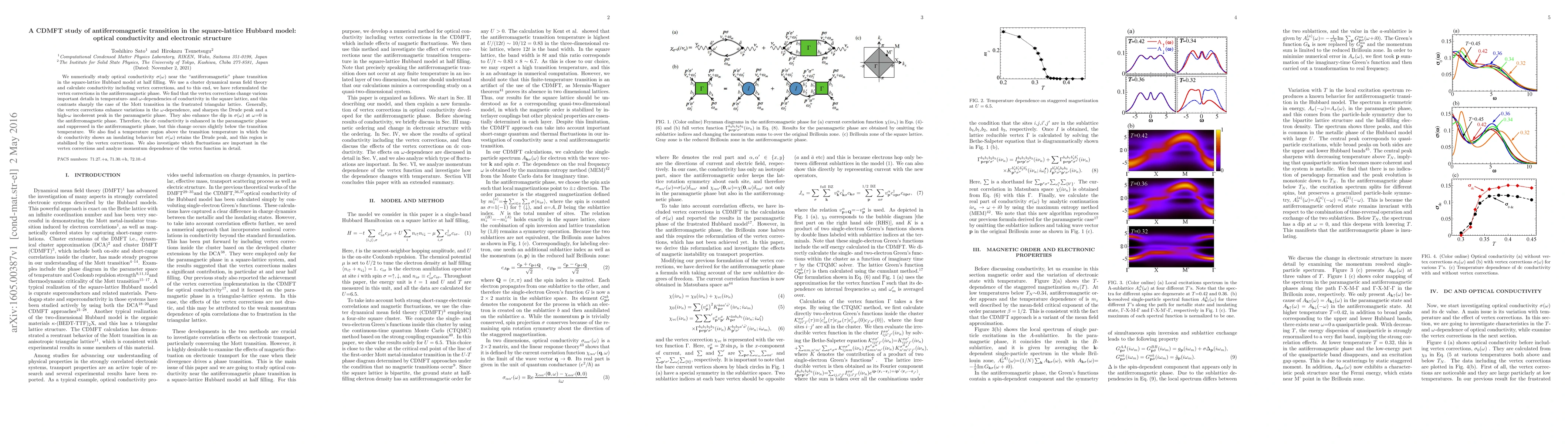 This study uses cluster dynamical mean field theory to investigate optical conductivity near the antiferromagnetic transition in the square-lattice Hubbard model, revealing that vertex corrections significantly alter the temperature- and frequency-dependent conductivity, enhancing the Drude peak and suppressing dc conductivity in the antiferromagnetic phase.