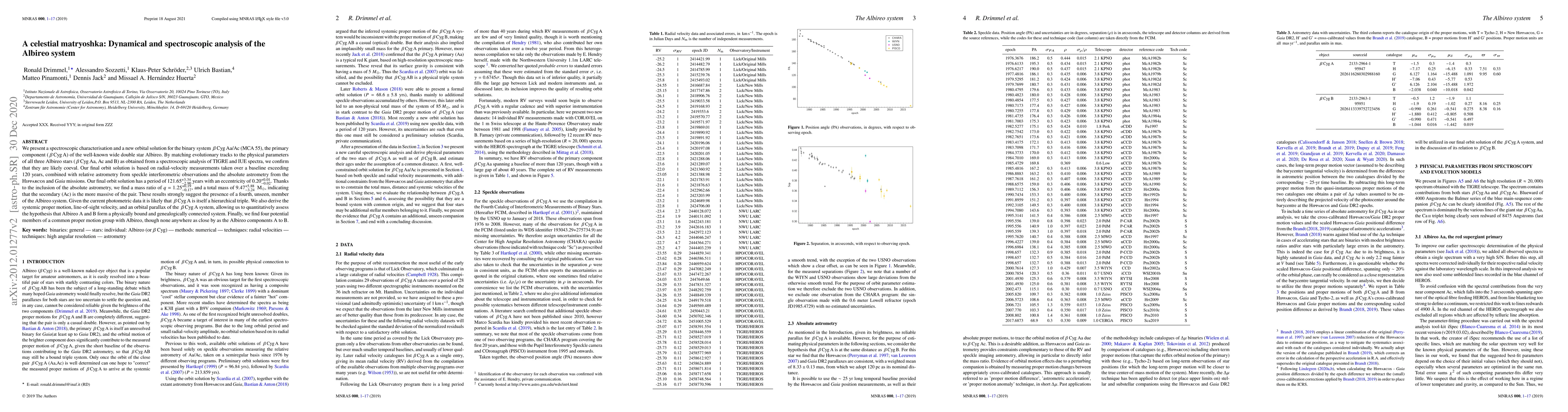 This paper presents a detailed spectroscopic and dynamical analysis of the Albireo binary system, providing a new orbital solution for the primary component. The study confirms the coeval nature of the three Albireo stars, revealing a likely hierarchical triple structure and suggesting the presence of an unseen fourth member.