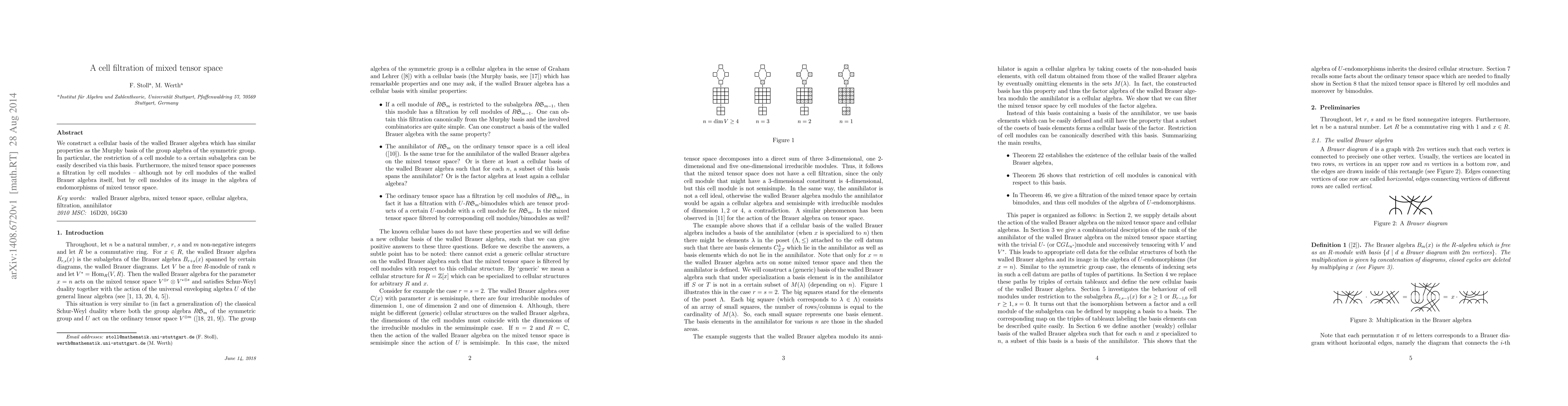 We construct a cellular basis of the walled Brauer algebra which has similar properties as the Murphy basis of the group algebra of the symmetric group. In particular, the restriction of a cell module to a certain subalgebra can be easily described via this basis. Furthermore, the mixed tensor space possesses a filtration by cell modules -- although not by cell modules of the walled Brauer algebra itself, but by cell modules of its image in the algebra of endomorphisms of mixed tensor space.