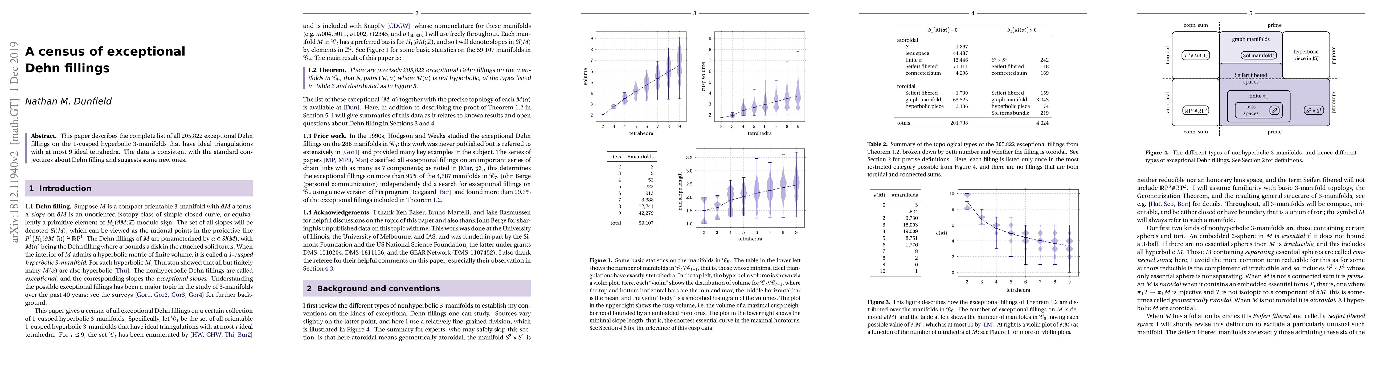 This research enumerates all 205,822 exceptional Dehn fillings on 1-cusped hyperbolic 3-manifolds with up to 9 ideal tetrahedra, supporting standard conjectures and proposing new insights.