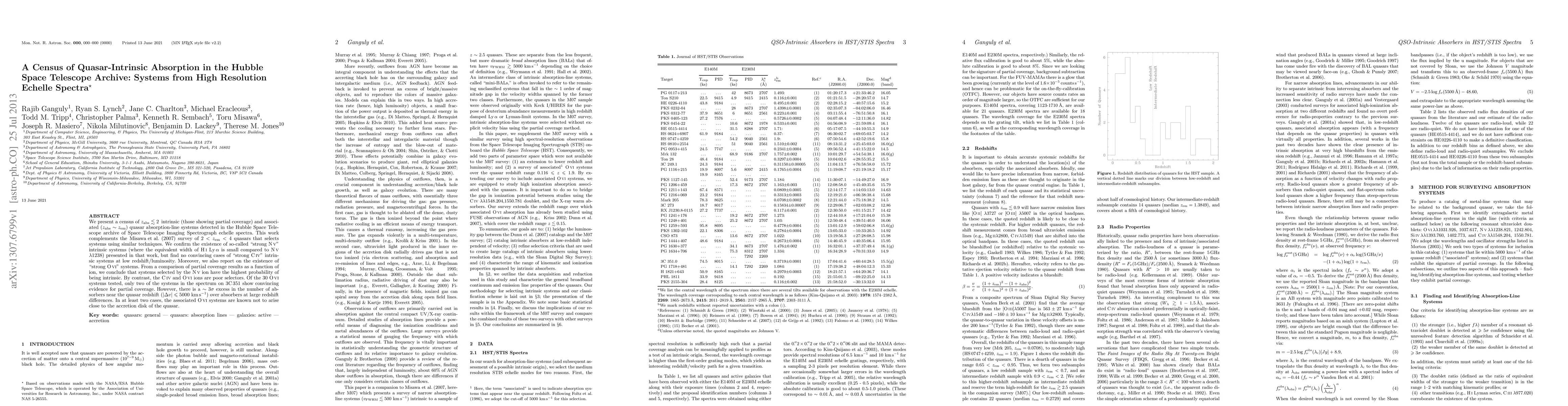This study catalogs quasar intrinsic absorption systems with z(abs) < 2 from HST archive data, confirming the presence of "strong N V" systems but finding no "strong C IV" systems at low redshift. It also reports on "strong O VI" systems, noting that N V is the best ion for selecting intrinsic systems, while C IV and O VI are less effective.