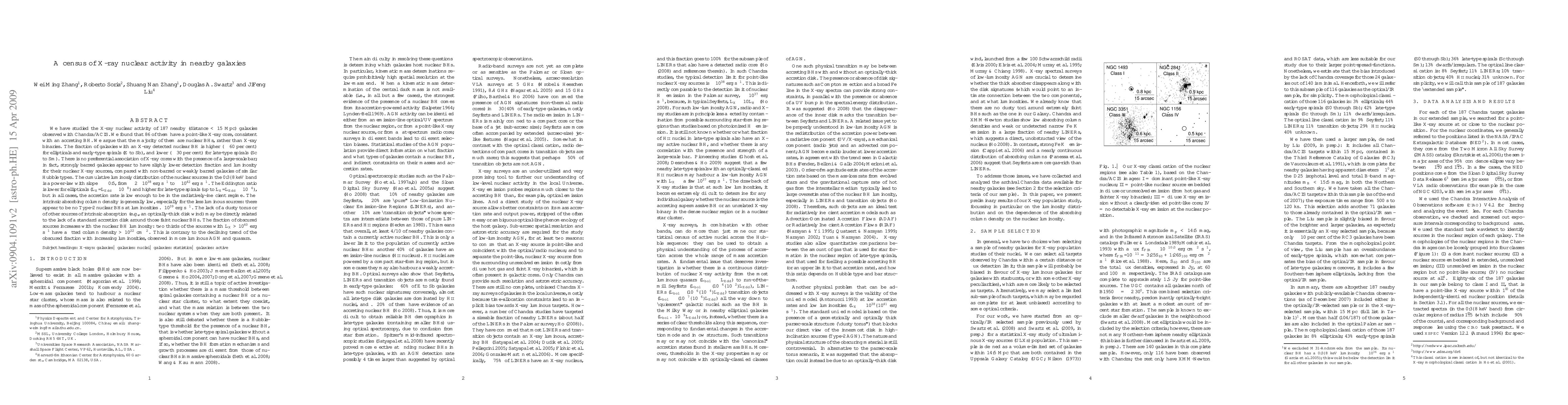 This study of 187 nearby galaxies using Chandra/ACIS data reveals that 60% of ellipticals and early-type spirals host X-ray detected nuclear black holes, while only 30% of late-type spirals do. The majority of detected X-ray cores are likely nuclear black holes rather than binaries, with low accretion rates in the radiatively-inefficient regime.