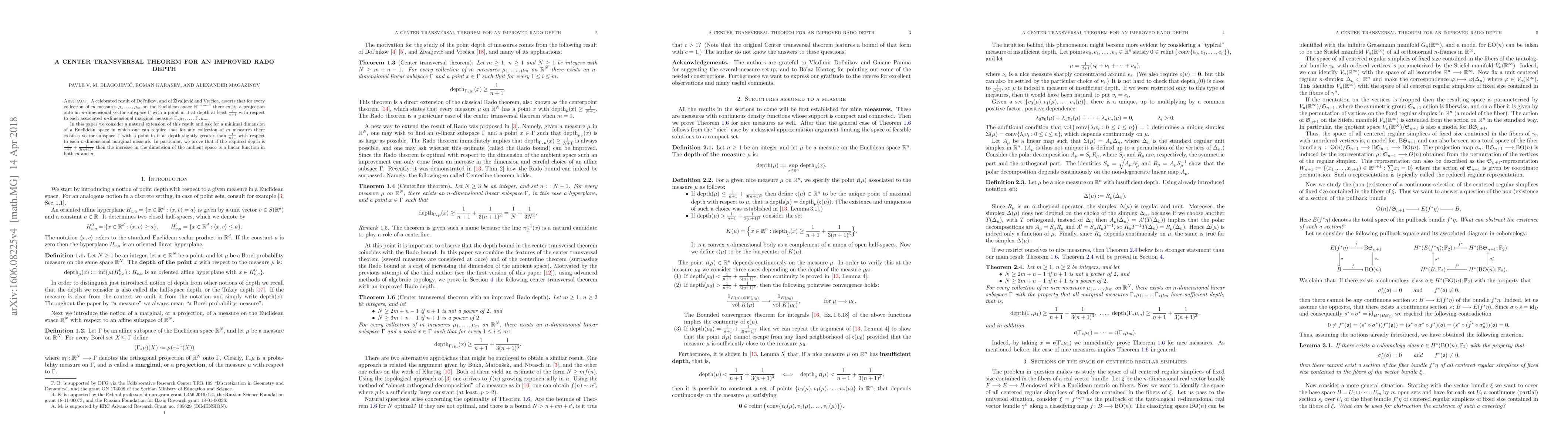 Researchers extend a classic theorem to require a deeper point in a subspace for each marginal measure, proving that the dimension of the ambient space increases linearly with both the number of measures and the desired depth.