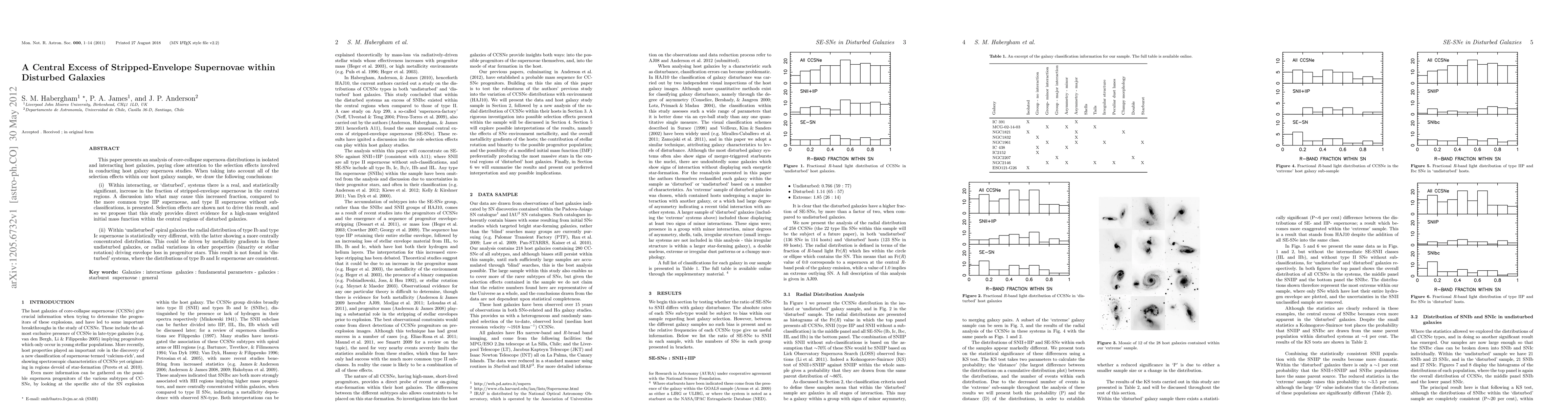 This study finds a statistically significant increase in stripped-envelope supernovae in the central regions of disturbed galaxies, suggesting a high-mass weighted initial mass function. In contrast, undisturbed spiral galaxies show a more centrally concentrated distribution of type Ic supernovae, potentially due to metallicity gradients or other progenitor star properties.