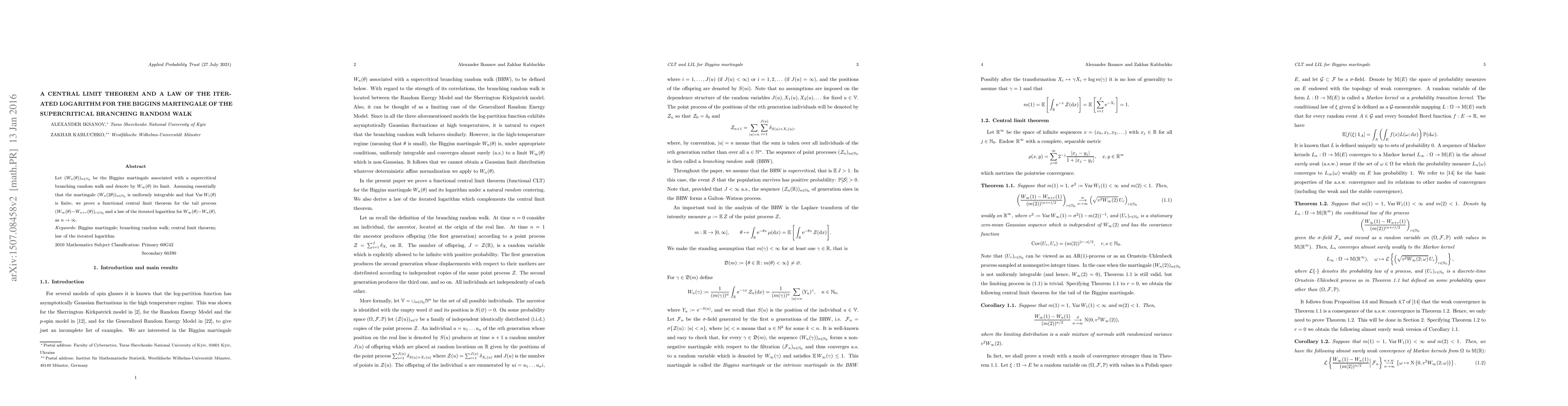 This paper proves a functional central limit theorem and a law of the iterated logarithm for the Biggins martingale associated with a supercritical branching random walk, under the assumptions of uniform integrability and finite variance of the initial martingale.