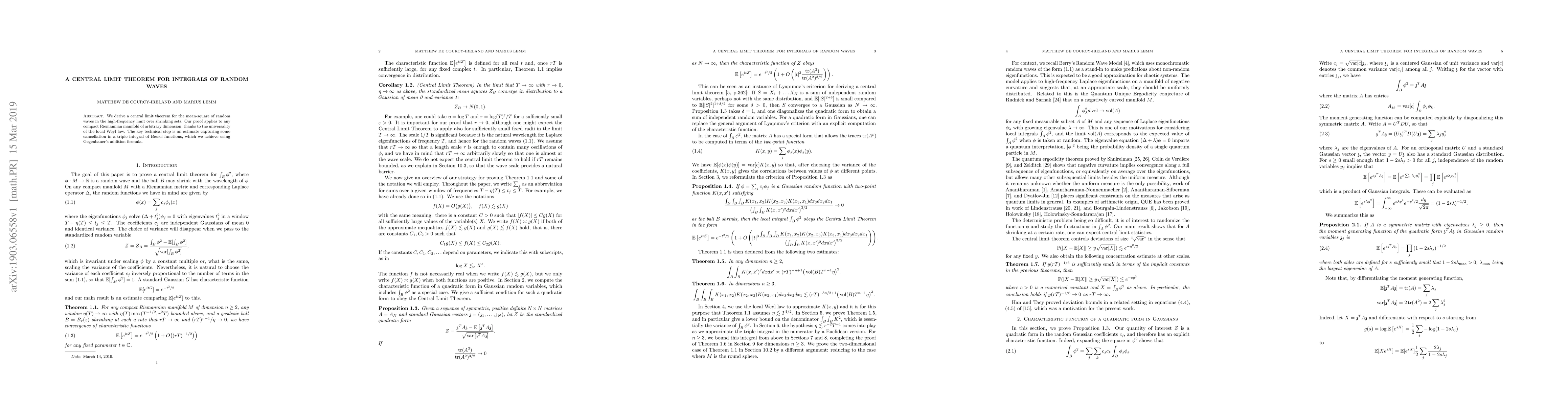 This paper establishes a central limit theorem for random waves on compact Riemannian manifolds, providing a high-frequency limit over shrinking sets. The key finding applies the local Weyl law to achieve this result using Gegenbauer's addition formula.