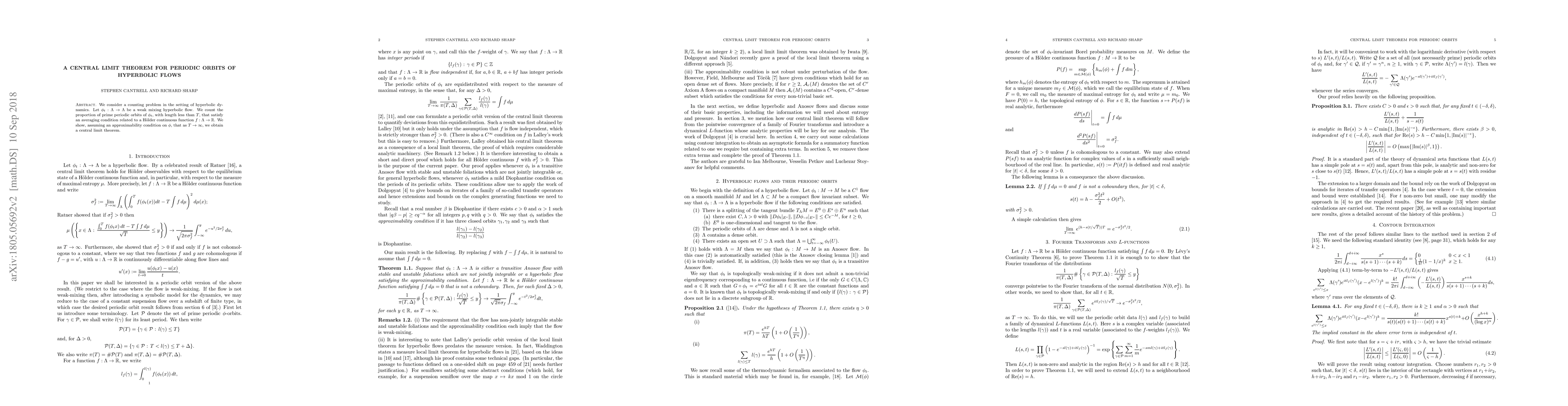 We consider a counting problem in the setting of hyperbolic dynamics. Let $\phi_t : \Lambda \to \Lambda$ be a weak mixing hyperbolic flow. We count the proportion of prime periodic orbits of $\phi_t$, with length less than $T$, that satisfy an averaging condition related to a H\"older continuous function $f: \Lambda \to \mathbb{R}$. We show, assuming an approximability condition on $\phi$, that as $T \to \infty$, we obtain a central limit theorem.