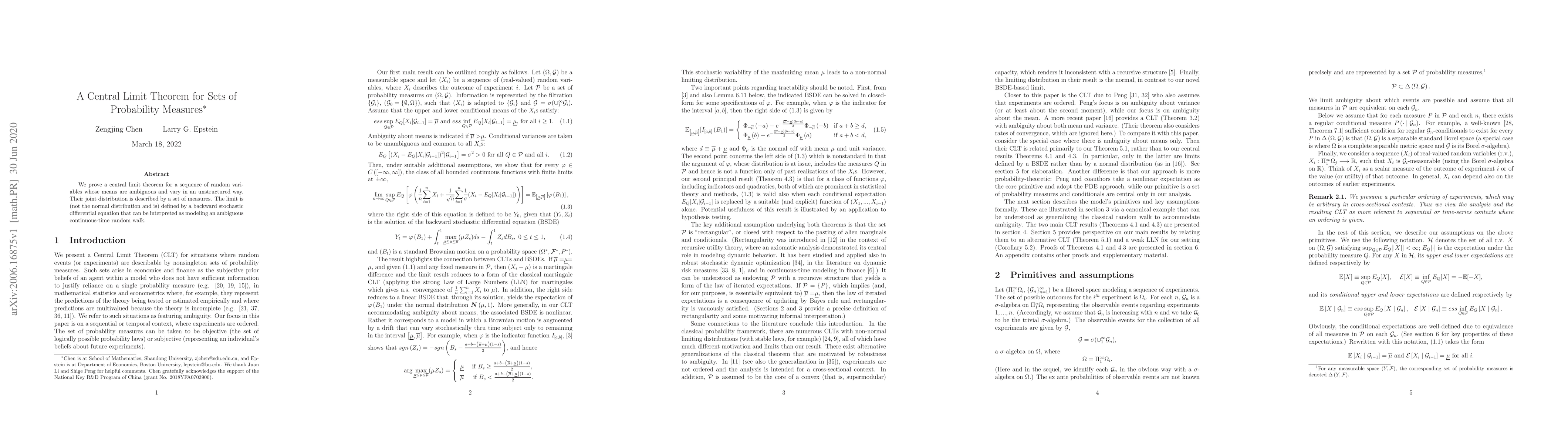 We prove a central limit theorem for a sequence of random variables whose means are ambiguous and vary in an unstructured way. Their joint distribution is described by a set of measures. The limit is (not the normal distribution and is) defined by a backward stochastic differential equation that can be interpreted as modeling an ambiguous continuous-time random walk.