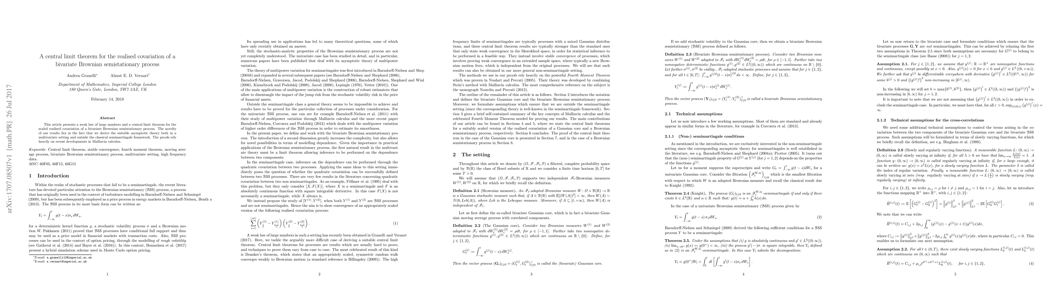 This paper establishes a weak law of large numbers and a central limit theorem for the realised covariation of a bivariate Brownian semistationary process, extending the results beyond the traditional semimartingale framework using advanced Malliavin calculus techniques.