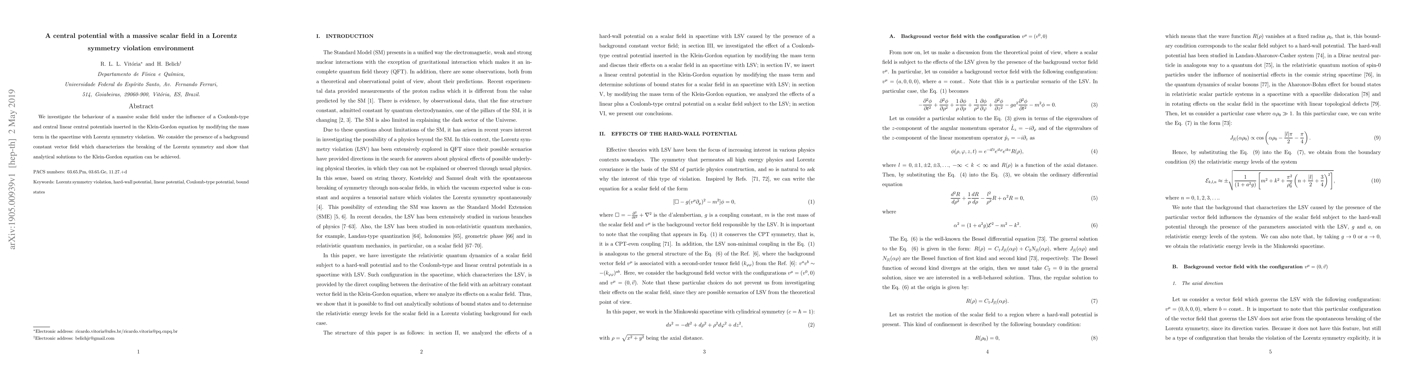 Researchers investigated a massive scalar field in a modified Klein-Gordon equation with Lorentz symmetry violation, finding analytical solutions that can be achieved with the presence of a background constant vector field.