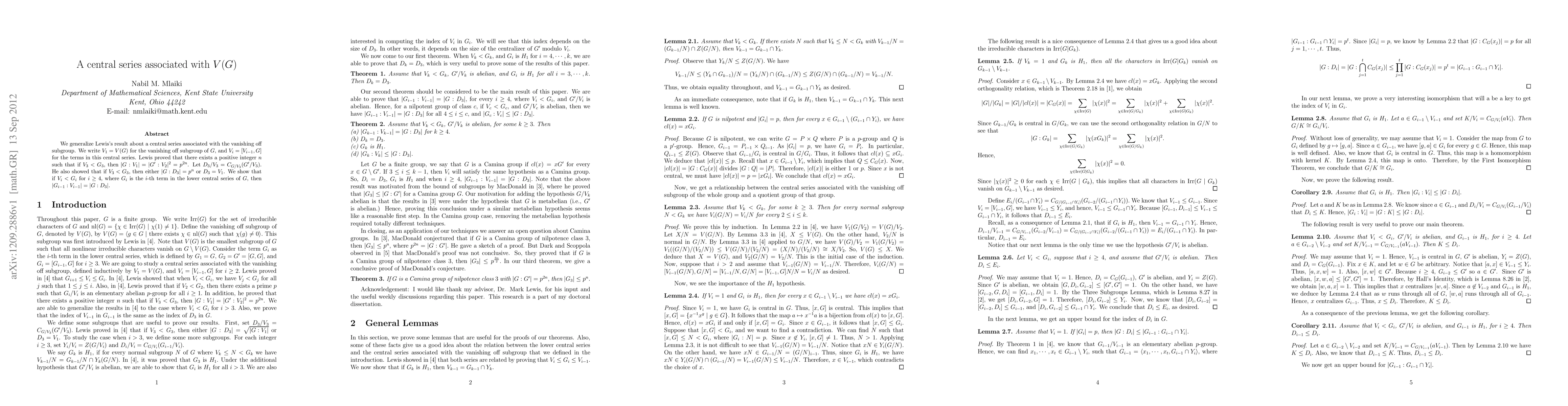 $G$, and $V_{i}=[V_{i-1},G]$ for the terms in this central series. Lewis proved