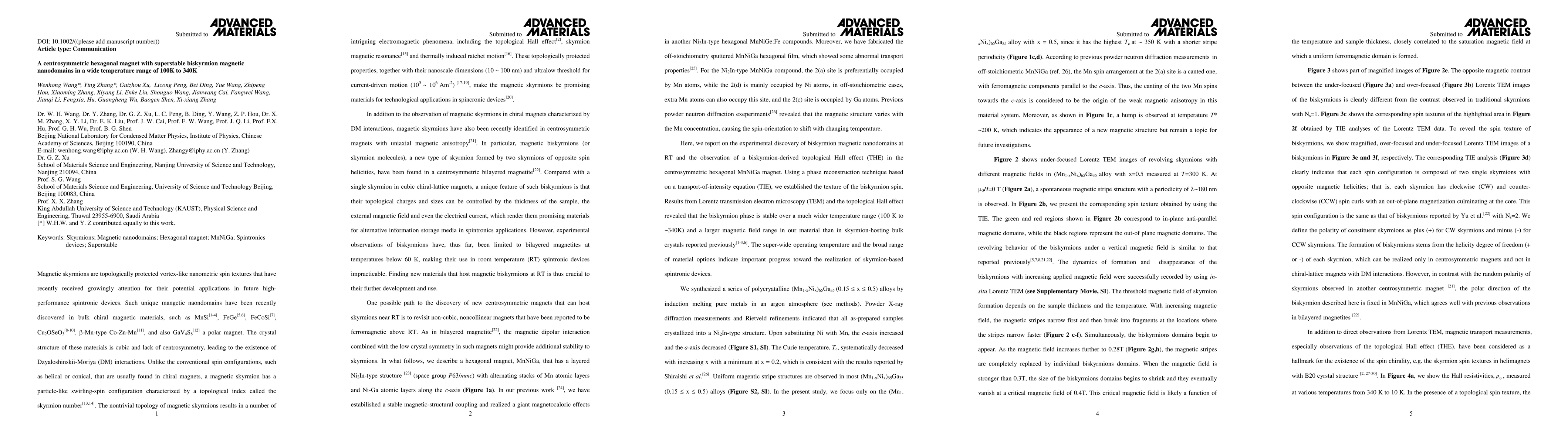 Researchers discovered biskyrmion magnetic nanodomains in a new centrosymmetric hexagonal material that can exist over a wide temperature range of 100K to 340K, offering progress toward the creation of skyrmion-based spintronic devices.