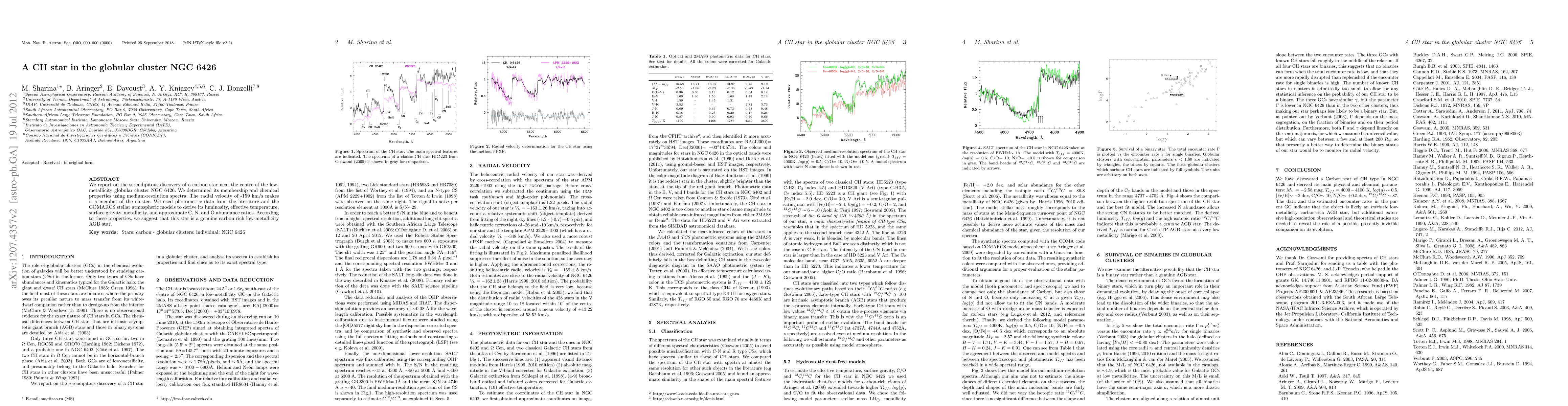 Astronomers discovered a carbon star in the globular cluster NGC 6426, determining its membership and chemical properties through medium-resolution spectra and photometric data.