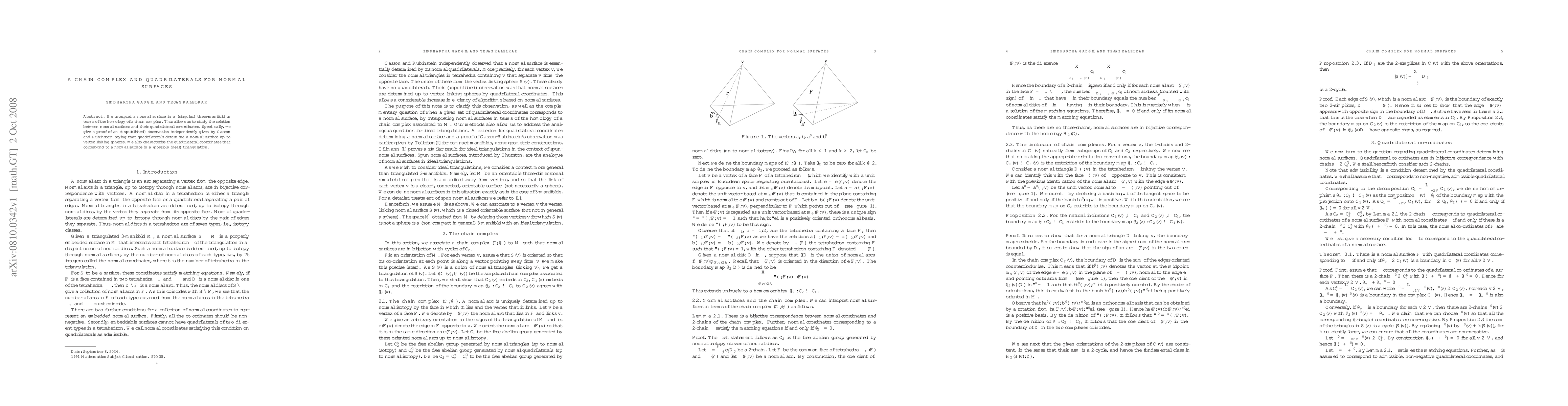 This paper interprets normal surfaces in three-manifolds via a chain complex, linking them to quadrilateral coordinates. It proves that quadrilaterals uniquely determine normal surfaces up to vertex linking spheres, and characterizes the quadrilateral coordinates for normal surfaces in triangulations.