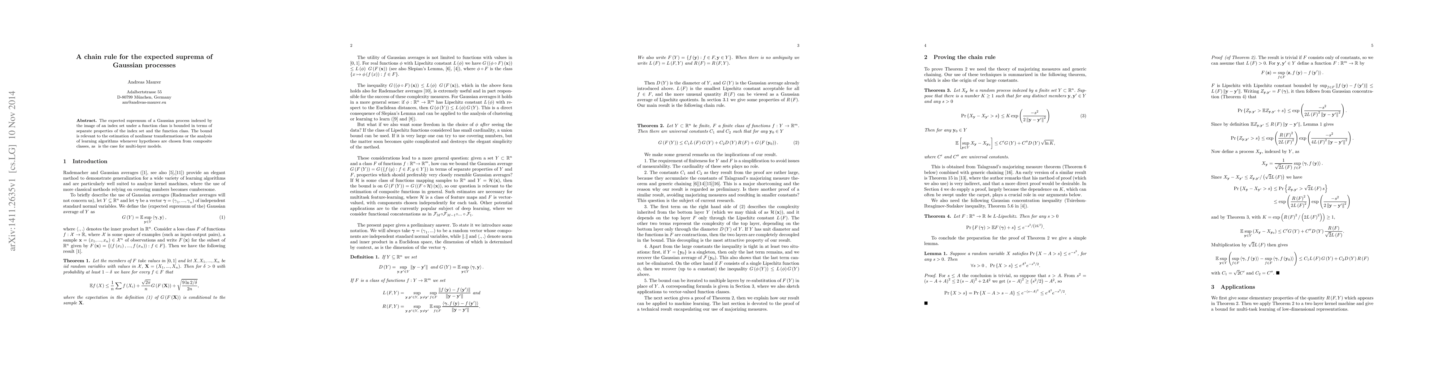 This paper establishes a chain rule for the expected supremum of Gaussian processes, providing a bound that relates the properties of the index set and function class. This result is crucial for estimating nonlinear transformations and analyzing learning algorithms in multi-layer models.