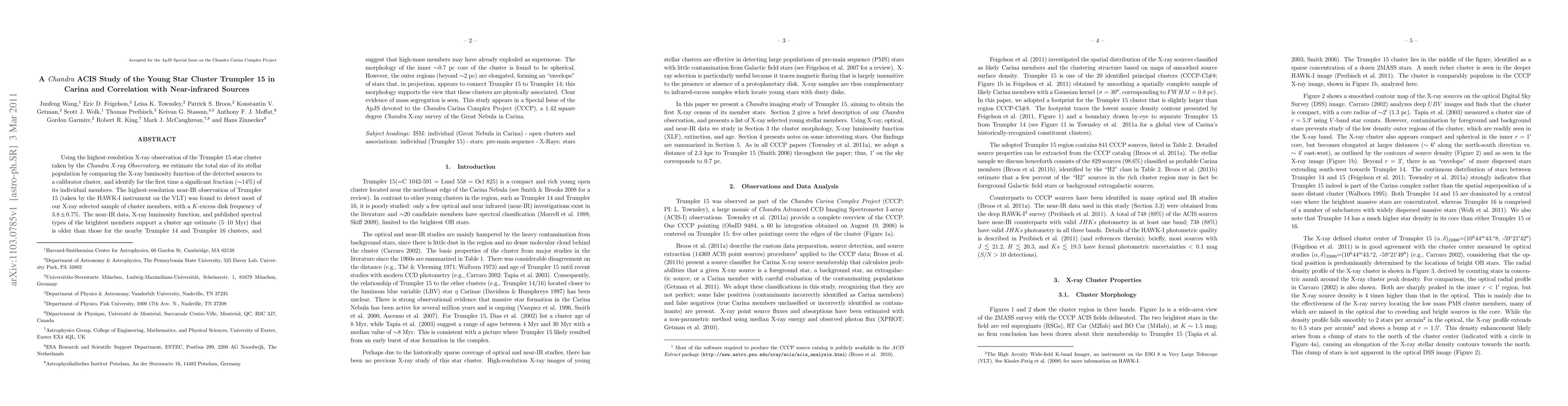 This study uses Chandra X-ray Observatory data to estimate the size and age of the young star cluster Trumpler 15 in Carina, identifying ~14% of its members. Near-IR observations confirm most X-ray sources, revealing a K-excess disk frequency of 3.8+-0.7%, suggesting an older age (5-10 Myr) compared to nearby clusters.