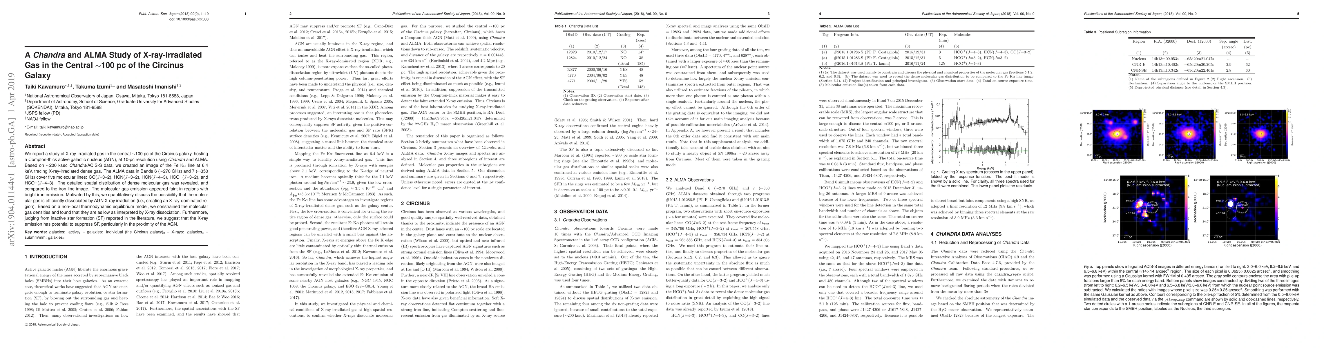 This study uses Chandra and ALMA to examine X-ray-irradiated gas in the central 100 pc of the Circinus galaxy, a Compton-thick AGN host. The researchers found that molecular gas emission is faint where iron emission is bright, suggesting X-ray dissociation. They also propose that AGN X-ray emission may suppress star formation in the galaxy's center.