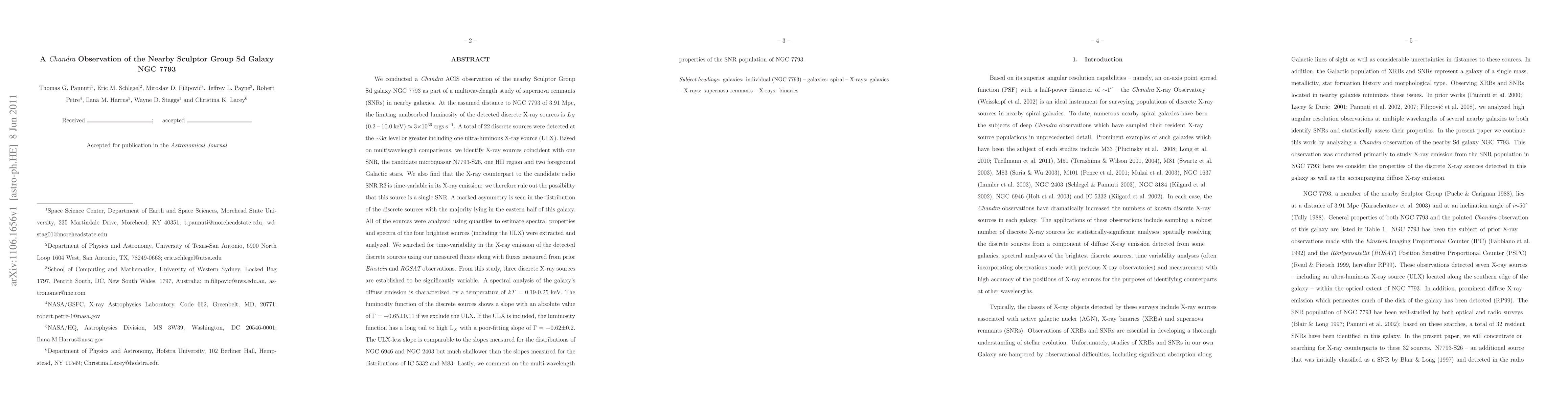 Researchers observed the Sculptor Group Sd galaxy NGC 7793 with Chandra ACIS, detecting 22 discrete X-ray sources, including one ultra-luminous X-ray source, and found that four of them are significantly variable.