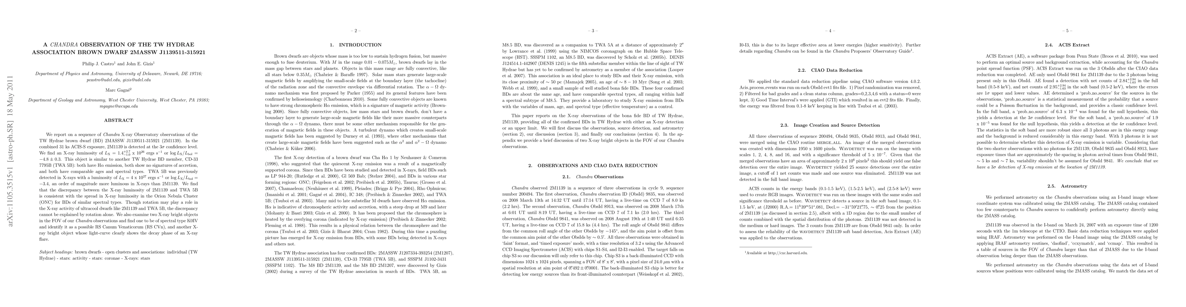 This paper reports Chandra X-ray observations of the TW Hydrae brown dwarf 2M1139, detecting it at a 3-sigma confidence level with an X-ray luminosity of 1.4 x 10^26 ergs s^-1. The study finds the X-ray luminosity discrepancy between 2M1139 and another similar brown dwarf, TWA 5B, consistent with variability in the Orion Nebula Cluster, suggesting rotation may influence but not fully explain the difference.