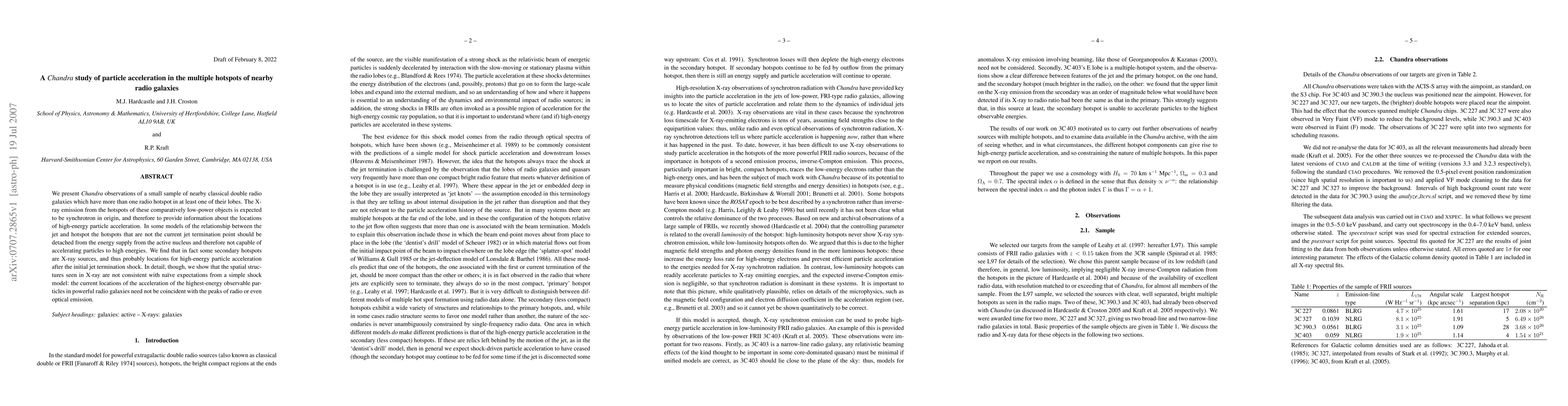 This study uses Chandra observations to investigate particle acceleration in multiple hotspots of nearby radio galaxies, finding that secondary hotspots are also X-ray sources, indicating ongoing high-energy particle acceleration. The spatial structures in X-ray emissions challenge simple shock models, suggesting the highest-energy particle acceleration may not align with radio or optical emission peaks.