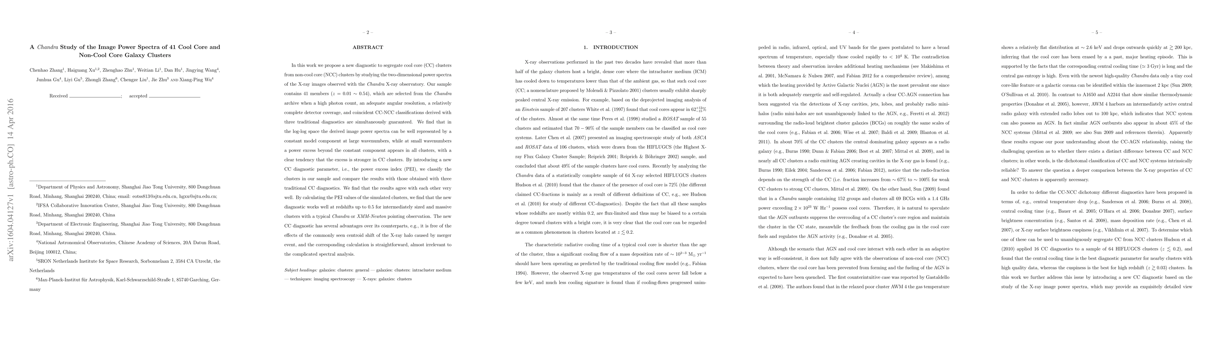 A new diagnostic method identifies cool core galaxy clusters using X-ray image power spectra, providing a more accurate and straightforward way to distinguish between cool and non-cool core clusters.