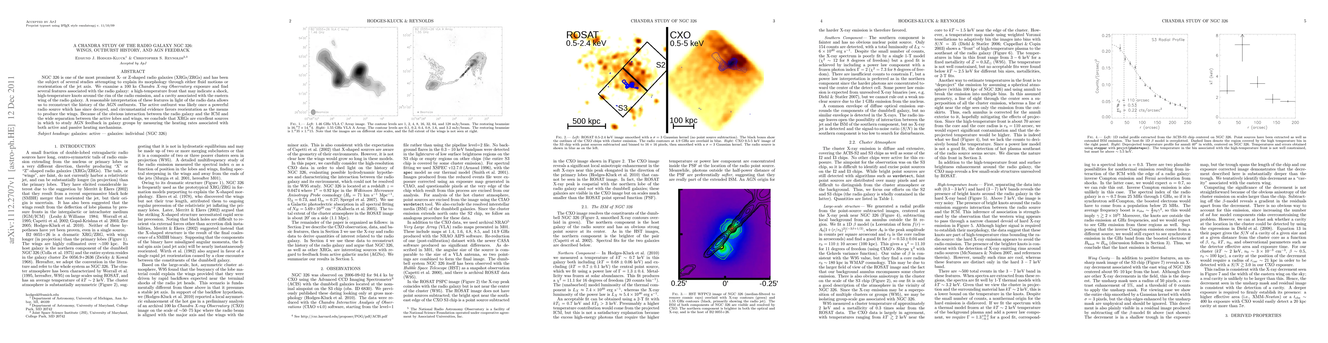 NGC 326 is one of the most prominent X- or Z-shaped radio galaxies (XRGs/ZRGs) and has been the subject of several studies attempting to explain its morphology through either fluid motions or reorientation of the jet axis. We examine a 100 ks archival Chandra exposure and find several features associated with the radio galaxy: a high-temperature front that may indicate a shock, high-temperature knots around the rim of the radio emission, and a cavity associated with the eastern wing of the radio galaxy. A reasonable interpretation of these features in light of the radio data allows us to reconstruct the history of the AGN outbursts. The active outburst was likely once a powerful radio source which has since decayed, and circumstantial evidence favors reorientation as the means to produce the wings. Because of the obvious interaction between the radio galaxy and the ICM and the wide separation between the active lobes and wings, we conclude that XRGs are excellent sources in which to study AGN feedback in galaxy groups by measuring the heating rates associated with both active and passive heating mechanisms.
