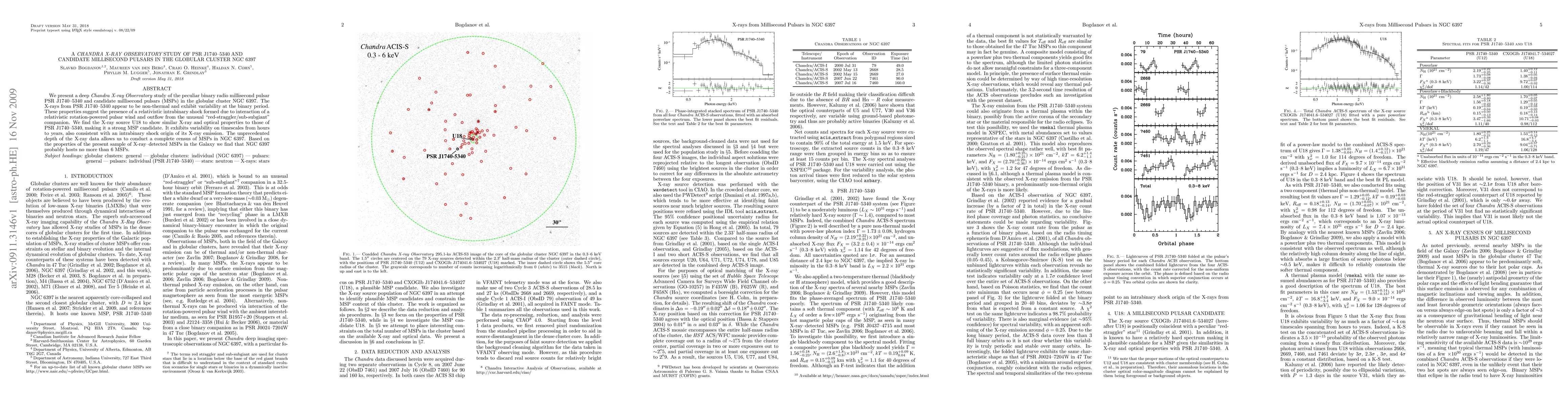 This study uses Chandra X-ray Observatory data to investigate PSR J1740--5340 and candidate millisecond pulsars in NGC 6397, revealing non-thermal X-ray variability suggesting a relativistic intrabinary shock. The X-ray source U18 is identified as a strong MSP candidate, and the deep survey suggests NGC 6397 likely hosts no more than 6 MSPs.