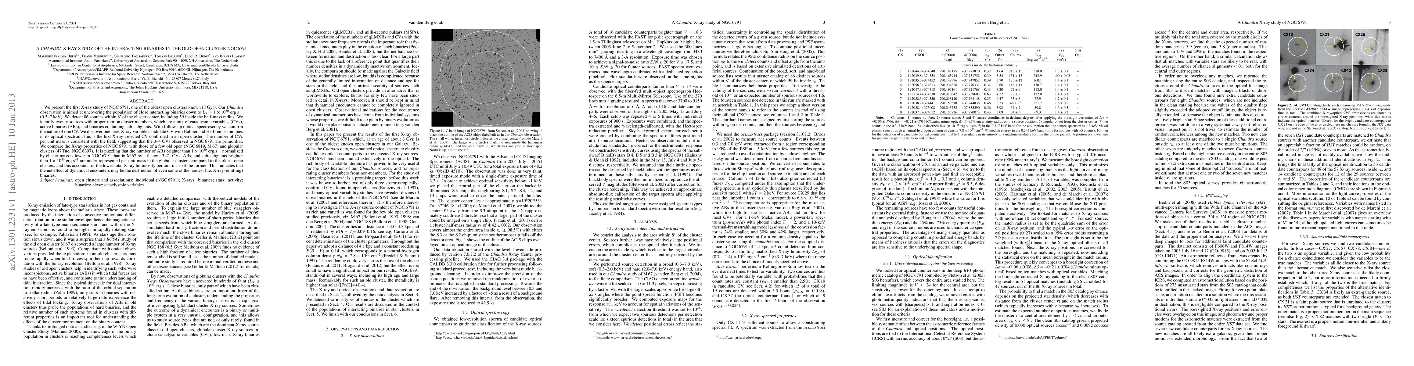 We present the first X-ray study of NGC6791, one of the oldest open clusters known (8 Gyr). Our Chandra observation is aimed at uncovering the population of close interacting binaries down to Lx ~ 1e30 erg/s (0.3-7 keV). We detect 86 sources within 8 arcmin of the cluster center, including 59 inside the half-mass radius. We identify twenty sources with proper-motion cluster members, which are a mix of cataclysmic variables (CVs), active binaries (ABs), and binaries containing sub-subgiants. With follow-up optical spectroscopy we confirm the nature of one CV. We discover one new, X-ray variable candidate CV with Balmer and HeII emission lines in its optical spectrum; this is the first X-ray--selected CV confirmed in an open cluster. The number of CVs per unit mass is consistent with the field, suggesting that the 3-4 CVs observed in NGC6791 are primordial. We compare the X-ray properties of NGC6791 with those of a few old open (NGC6819, M67) and globular clusters (47Tuc, NGC6397). It is puzzling that the number of ABs brighter than 1e30 erg/s normalized by cluster mass is lower in NGC6791 than in M67 by a factor ~3 to 7. CVs, ABs, and sub-subgiants brighter than 1e30 erg/s are under-represented per unit mass in the globular clusters compared to the oldest open clusters, and this accounts for the lower total X-ray luminosity per unit mass of the former. This indicates that the net effect of dynamical encounters may be the destruction of even some of the hardest (i.e. X-ray--emitting) binaries.