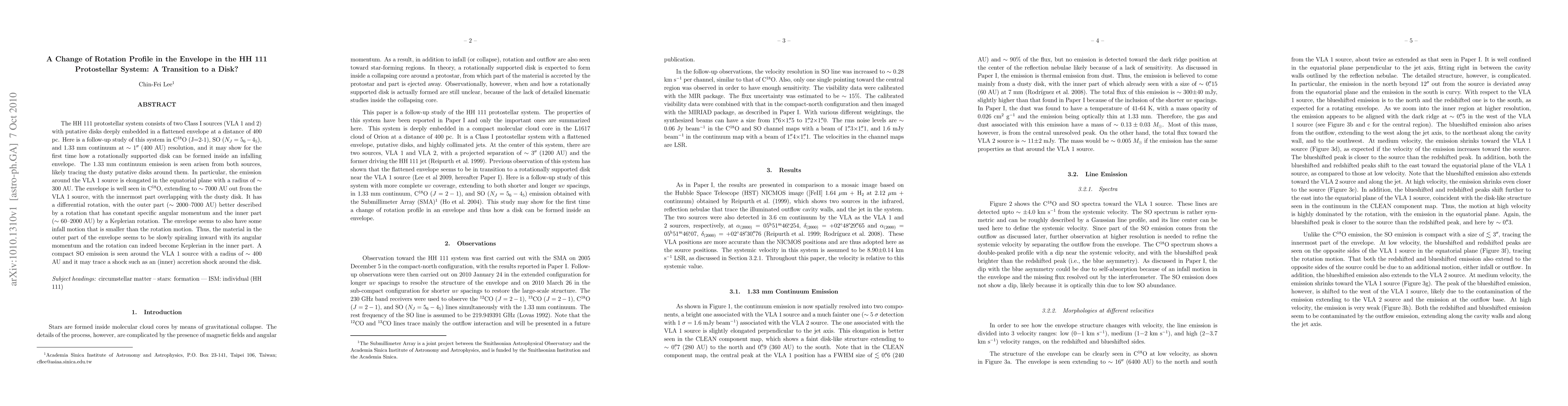 This study investigates the HH 111 protostellar system, revealing a transition from a differentially rotating envelope to a Keplerian rotation profile indicative of a forming disk around VLA 1. The 1.33 mm continuum emission suggests the presence of dusty disks, with the inner envelope showing signs of infall and angular momentum conservation.